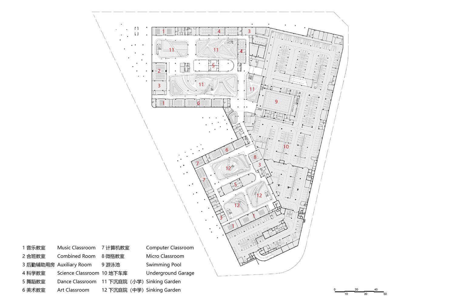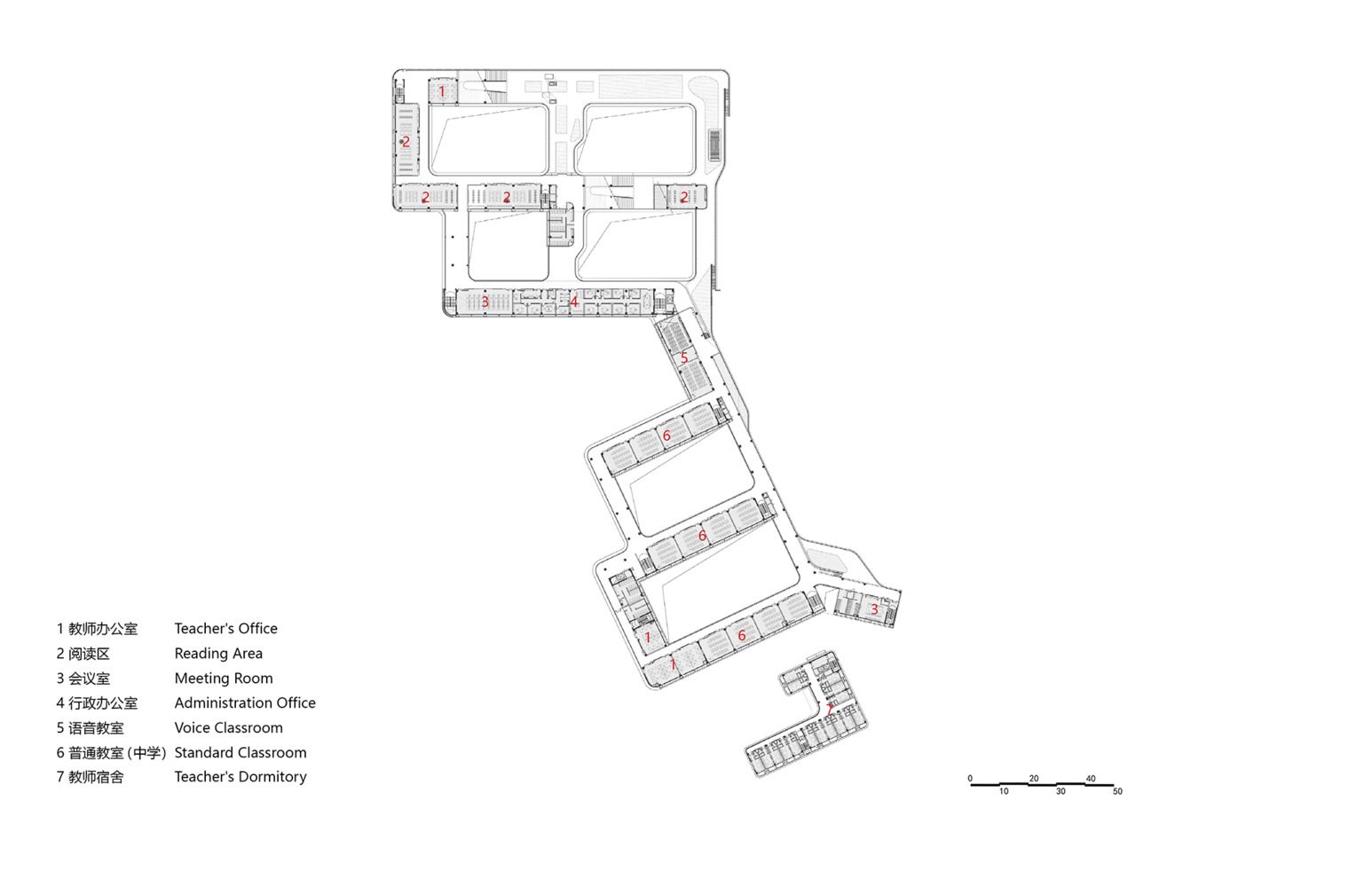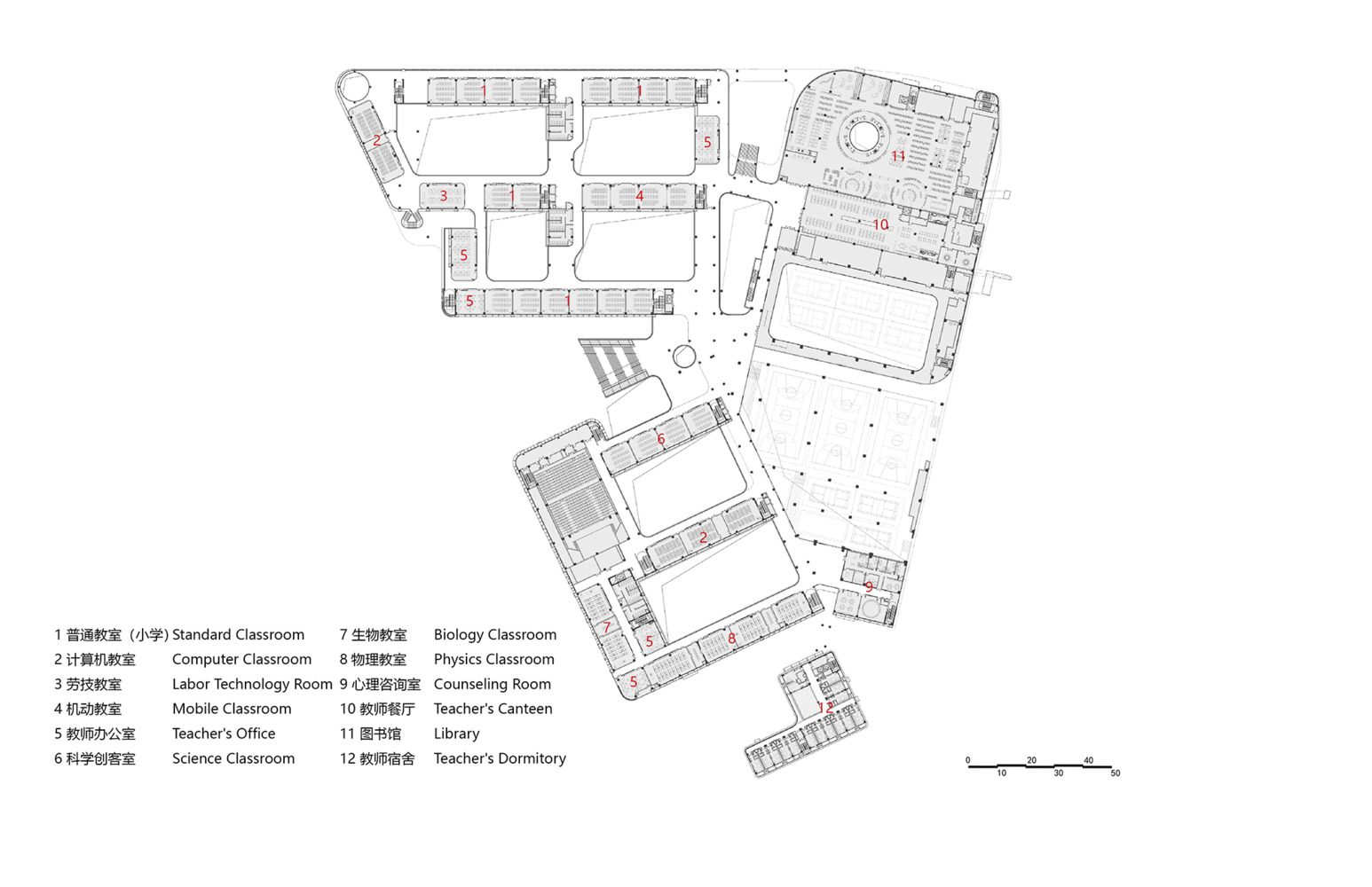 The Shenzhen Middle School Guangming Science City Campus represents an exploration of what “future campus architecture” could be. Through this project, we aim to respond proactively to future urban development through architectural design. At the same time, we focus on three spatial dimensions in the creation of the campus: multi-form, multi-level, and multi-scale. From these three dimensions, we attempt to construct a rich and layered spatial system for the school, catering to the diverse environmental needs of various teaching models. The entire design proposal goes beyond simply creating a standardized, vibrant campus—it aspires to build a school of the future, offering a richly immersive educational experience full of vitality.