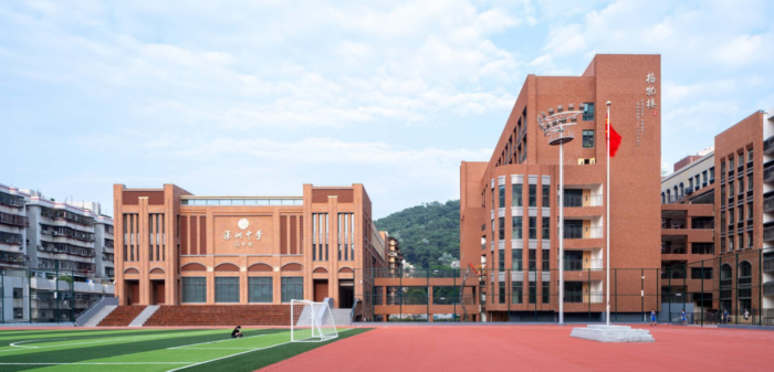 The new campus maintains architectural continuity with the Shenzhen Middle School’s senior high school section. The façade preserves the classic three-section composition while incorporating modern design elements, resulting in a distinctive architectural identity.