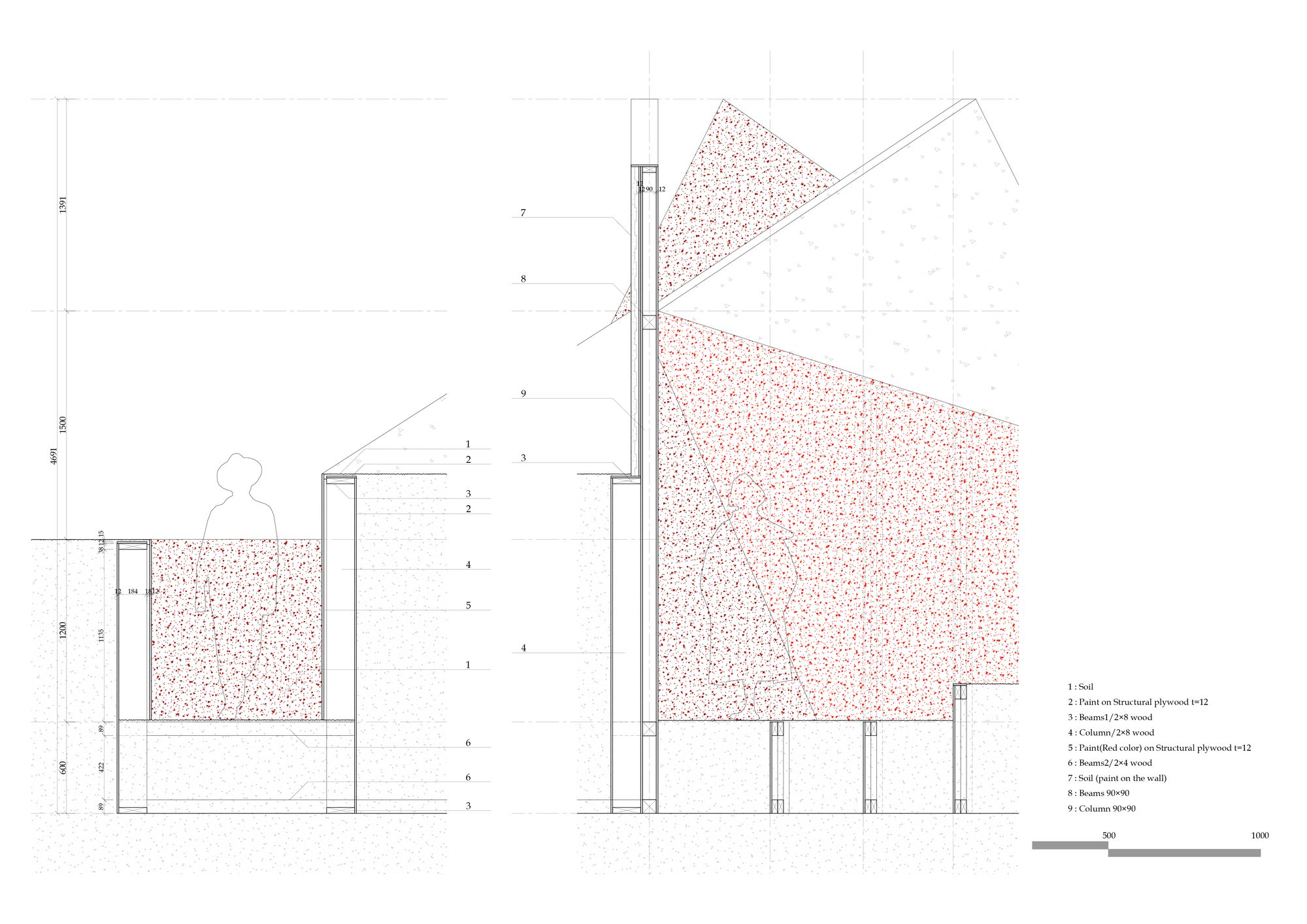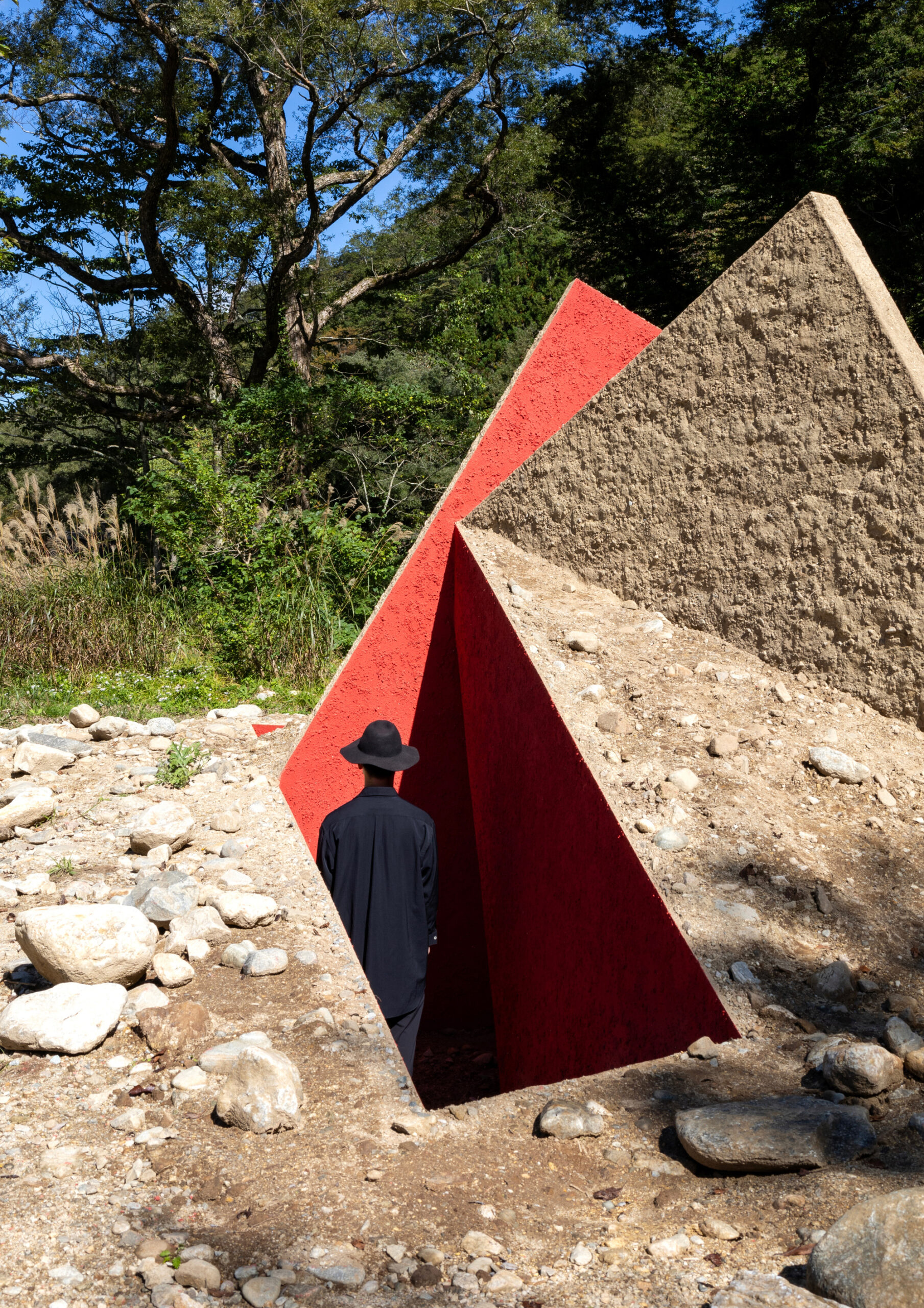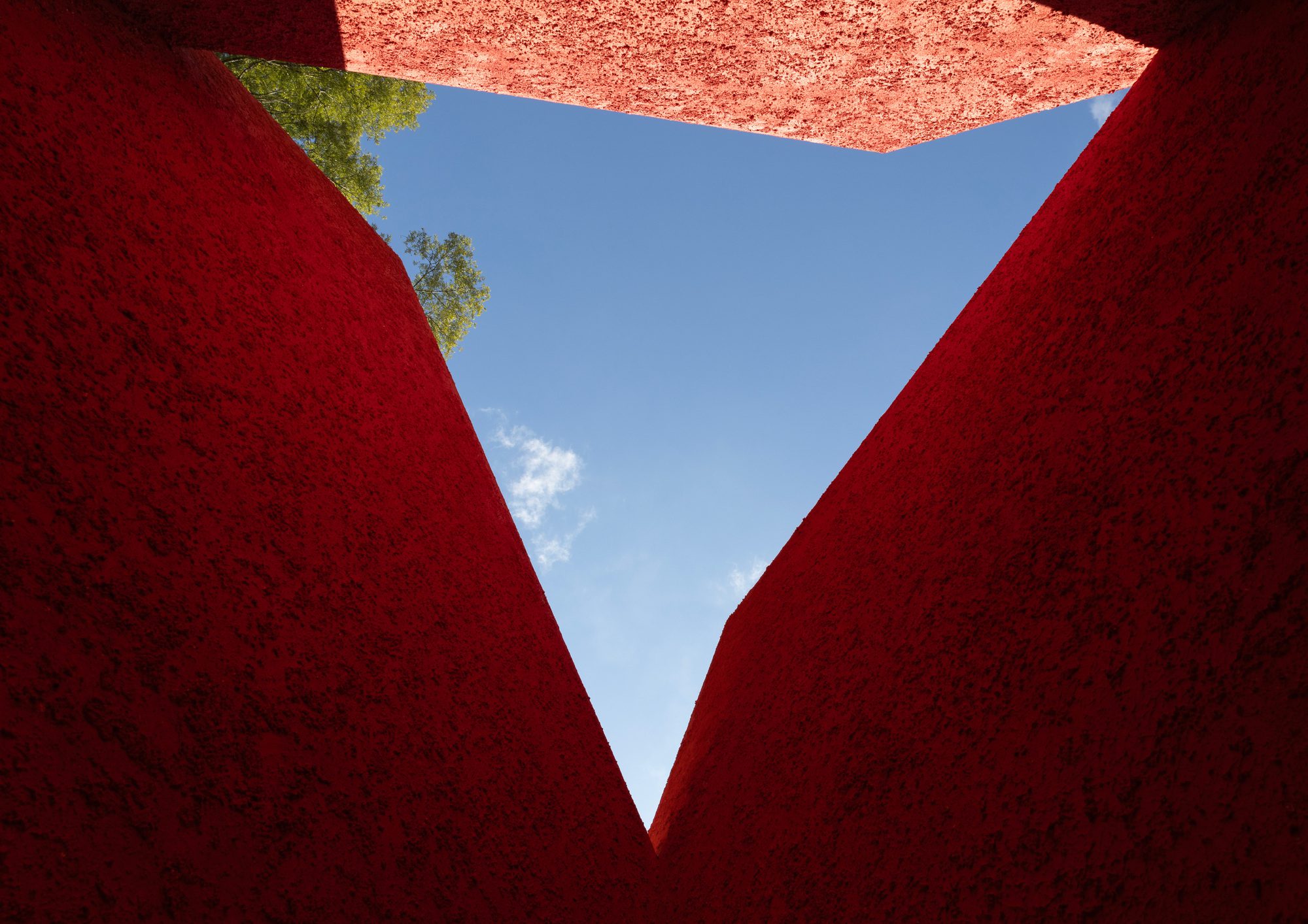 The idea was to create a space that stands strong and connects to the earth, and a small space in the center that cuts out the sky.