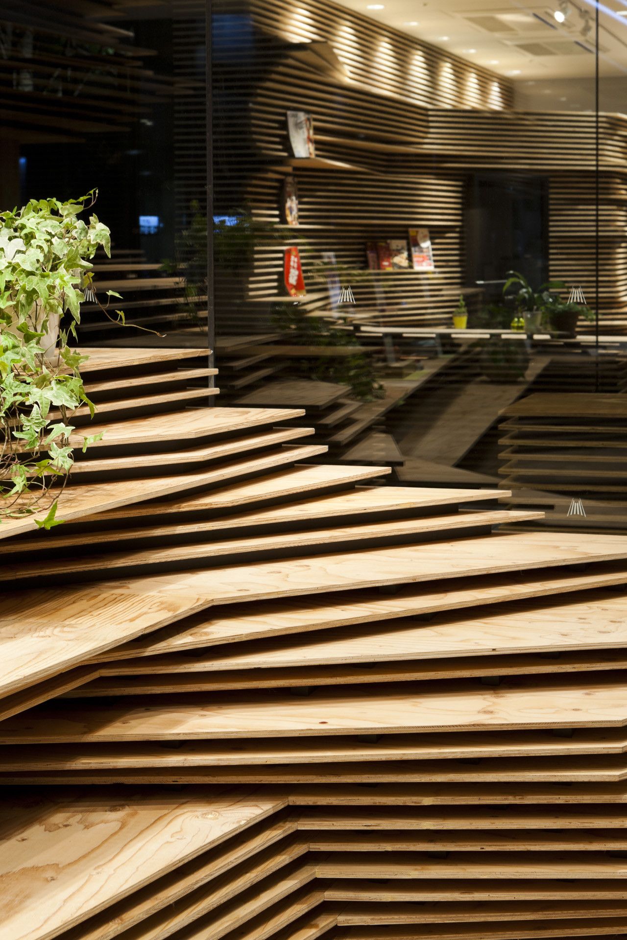 Providing an escape from the streets of Osaka, Japan, the Shun*Shoku lounge designed by Kengo Kuma is a beautifully constructed intimate retreat. Kengo Kuma designed this installation for Japanese restaurant guide Gurunavi and is 82 square meters in space. The entire lounge is retrofitted inside a larger building to create a unique and one of a kind space that any and all can visit.