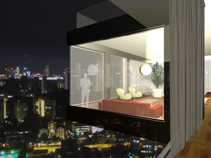 The Westwood Tower is located on a prime location on the Orchard Road, Singapore’s Champs- Elysées. Built in the seventies, the tower lacks architectural expression and amenities. Deriving its identity from the exposed concrete construction, it presents itself as a ‘building without characteristics’, being neither inspiring nor appealing. Nevertheless, the building quality and layout of the apartments are good. Therefore an intense refurbishment of the tower is considered. But a mere renovation won’t be enough, something special is needed to give it a new iconic expression. A sky village is created by stacking 13 penthouses on top of each other.