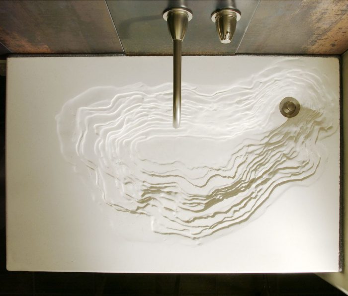 They call themselves “purveyors of fine concrete”, but I would say they are far beyond that. American studio Gore Design Co. and its artists have a lot of skills that give a sink a long-lasting impression. Gore has created different designs of marvelous concrete sinks that I would like to show some of them here. Mainly, Im a fan of the “Erosion Sink,” pictured above; which is inspired by the organic shape of what happens when water runs its natural course. Tempe, Arizona-based Gore Design also produces countertops, cabinets, fireplaces and furniture with similar aesthetics and eco-ethics.