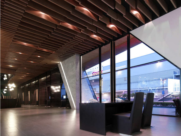 The massing of this project has triangulated and folded geometry wrapping up the interior space in order to achieve prominent form and dynamic circulation within the building. We try to provide a unique spacious experience for both the consumers and the neighborhood as well.