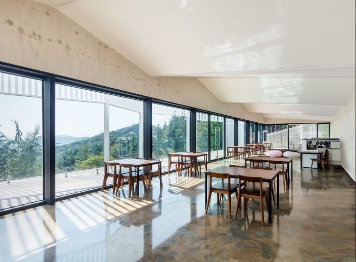 The project is located some 300 kilometres south of Seoul within lush cypress forests and enjoys distant views over the Korean Strait. Drawing diverse references from natural elements such as the site’s dramatic topography, pebbles and fireflies, the resort offers guests a direct and vivid connection with their natural surroundings. Each unit is well-screened from surrounding units while offering guests dramatic views over Suncheon Ecological Bay.