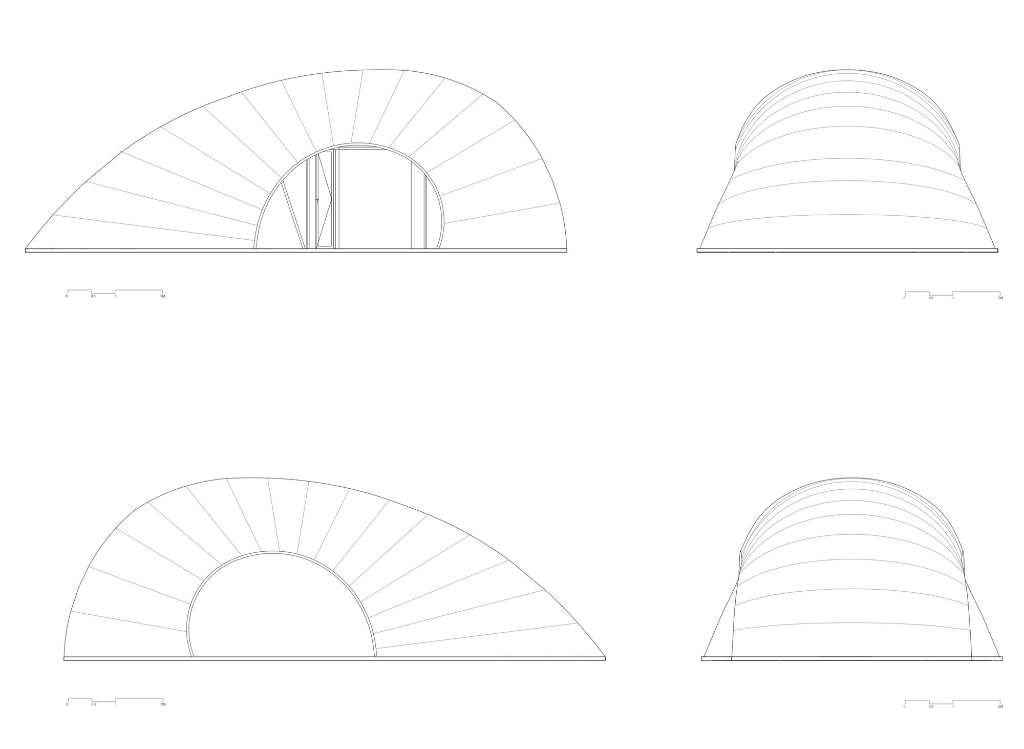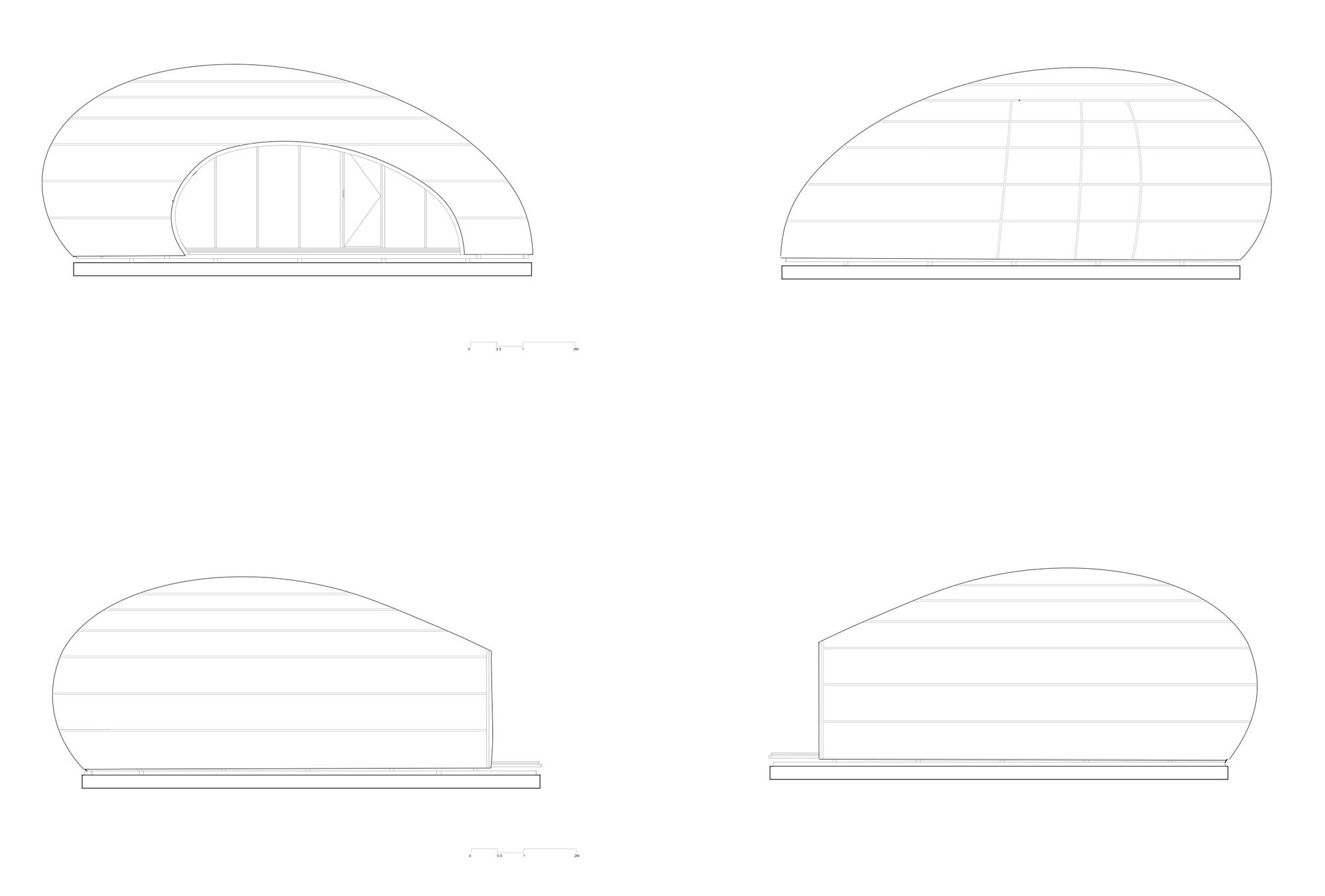 • Light steel frames are covered with a bespoke fabric made by French manufacturer Serge Ferrari.  The material is weather and fire resistant and tensioned at the base of the frame to fit the shape of an individual unit