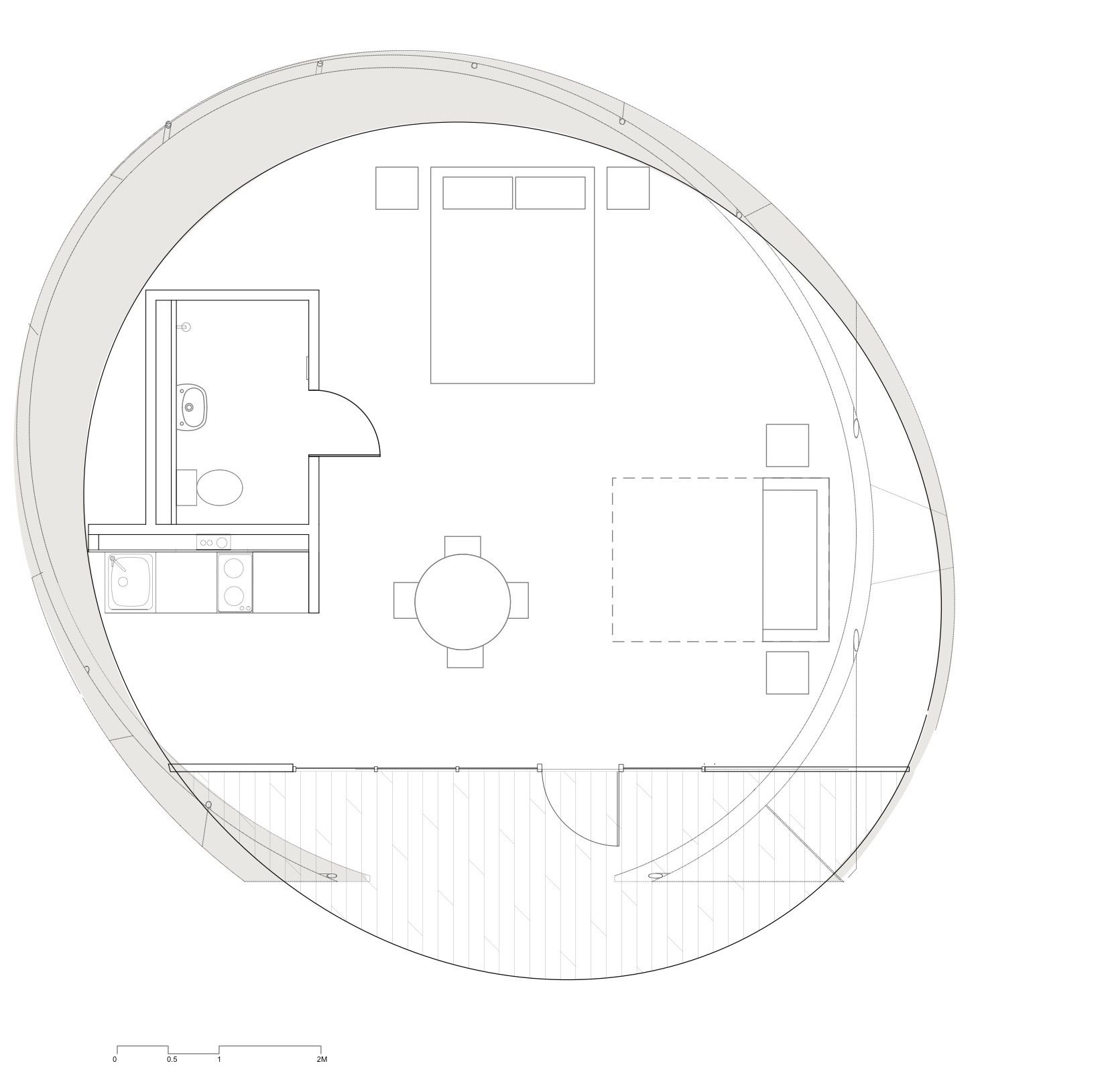• Plumbing and electricity infrastructure is connected to the mains supply although the structures can use natural resources (rainwater harvesting and PVs)