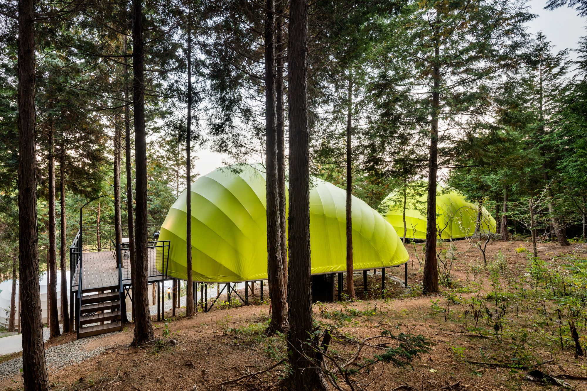 SJCC Glamping Resort designed by Atelier Chang, A radical take on the glamping concept has been launched in South Korea, offering guests the experience of being within a natural setting while enjoying the comfort of architecturally-designed, self-contained living spaces arranged around a communal facility.