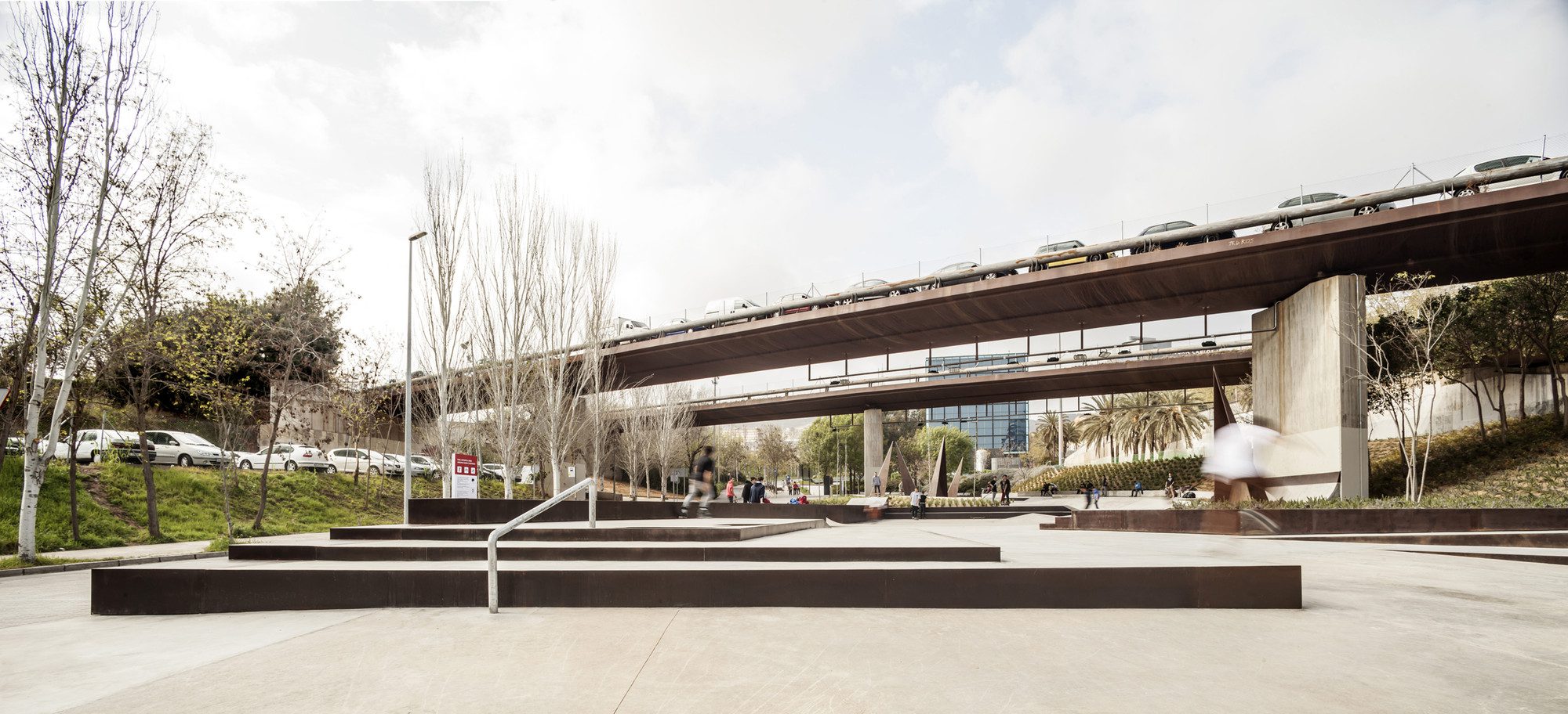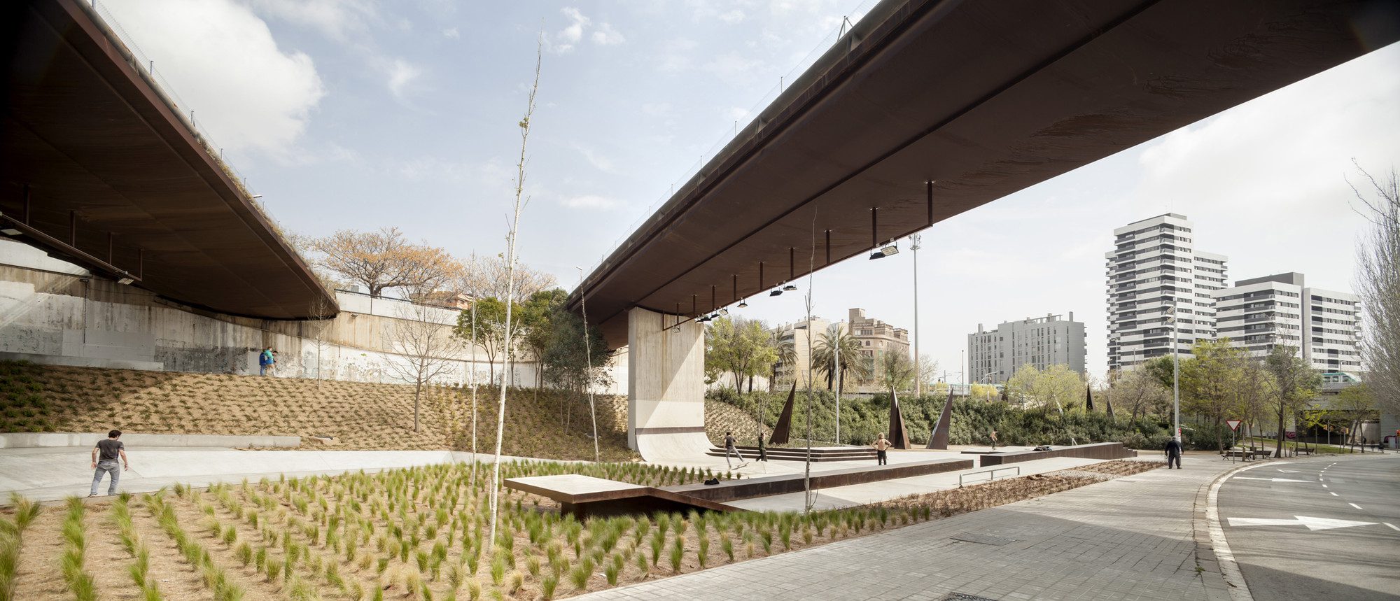 The project works with the limits of the area, taking advantage of the gradients and the containment of the slopes in order to place all the elements for skate.