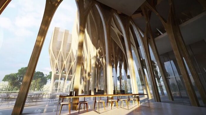 The Institute is a very poetic architectural piece by Zaha Hadid Architects . It is a radical shift in the language of architecture often displayed by the architect. The transition from violent futuristic geometries to warm, locally-sourced timber, which “will weather and take on a more a natural-looking feel” Says Zaha, will bring this institute closer to nature, thus bringing humans to a more familiar space. The five wooden towers, inspired by ancient Angkorian architecture, will start off as distinct spaces on ground level, linking and interlocking as they rise. As the towers interweave they will provide for an interaction among different departments of the institute to act as a whole.