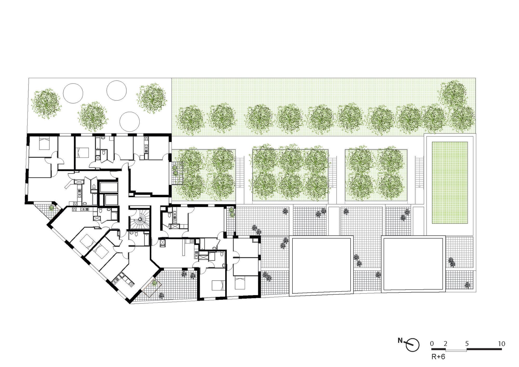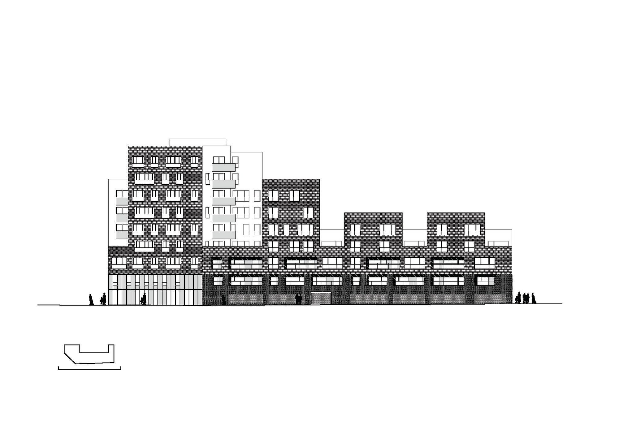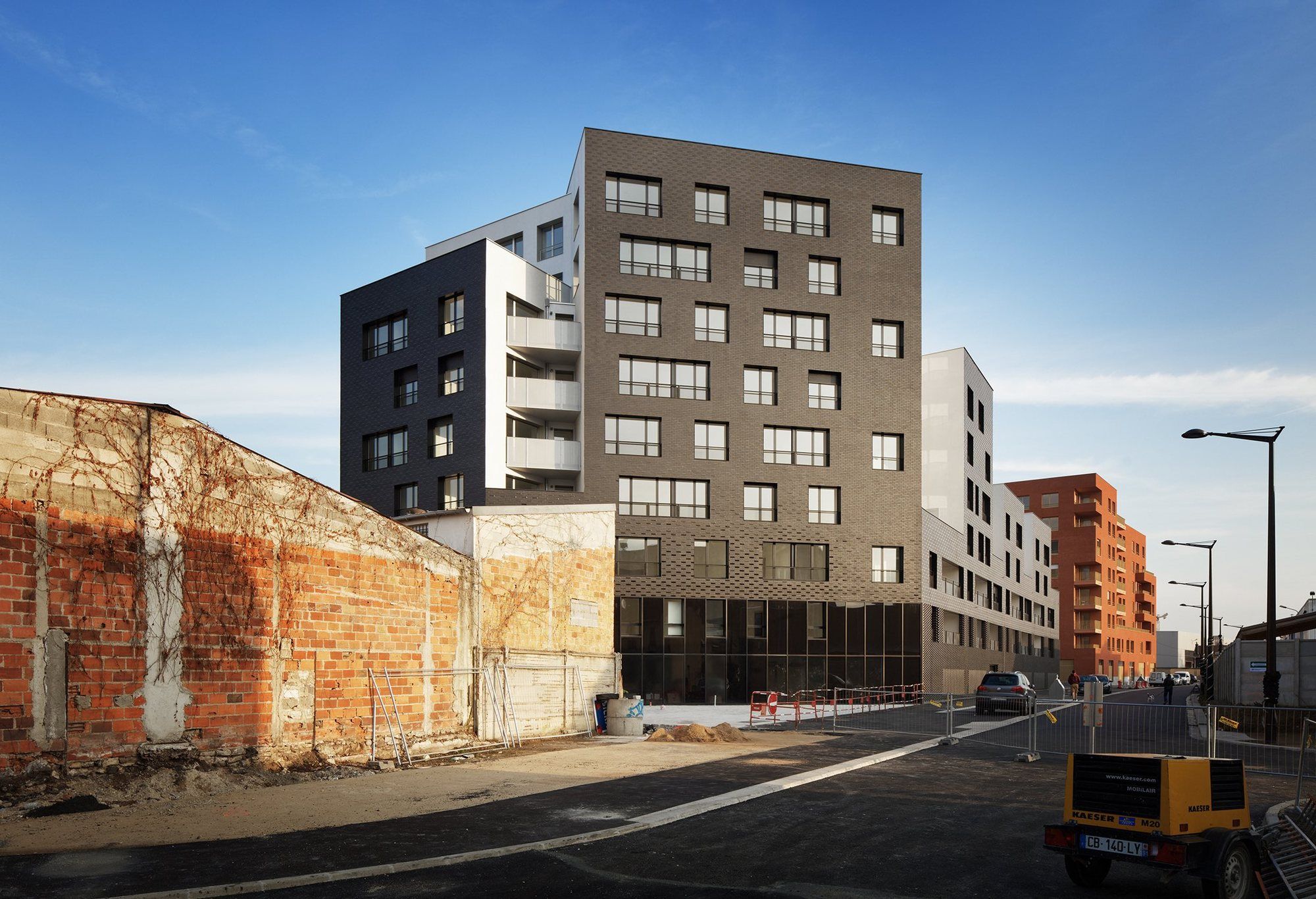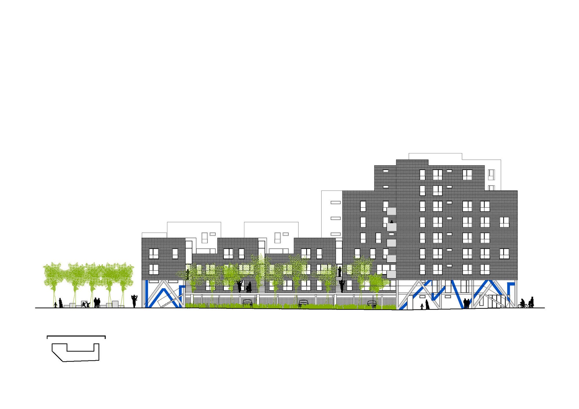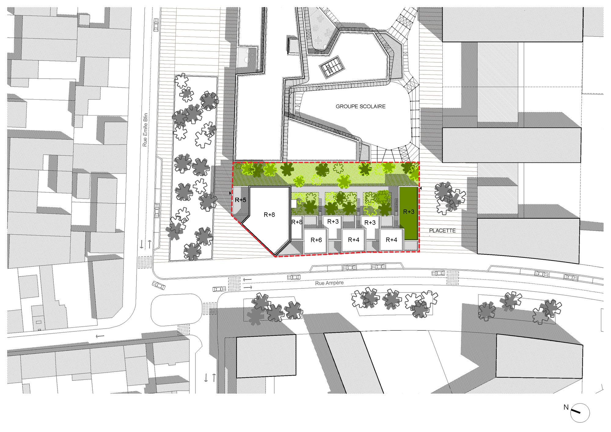 To ensure a transition between the scales of the very different urban situations, the project forms a homogeneous built environment made up of a series of buildings ranging from two to seven storeys in height. This staggered height plan goes hand-in-hand with a consideration of the range of uses and typologies, urban forms and modes of living that form a city.