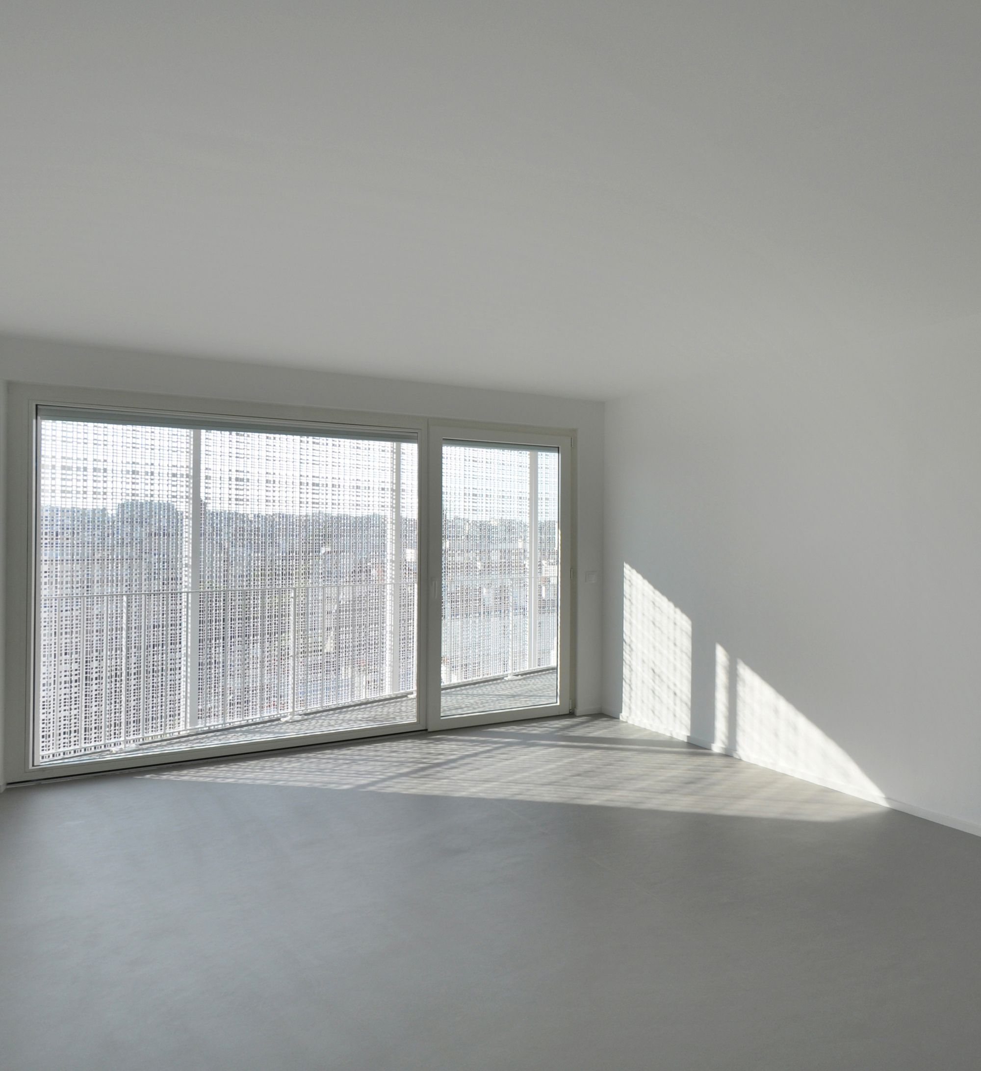 The dwellings include a hall – entry lock or loggia – and offer traditional comfort with a night section layout. Ranging from the studio to the 3 bedroom apartment, the kitchens are open plan. However, their distinct location among the unit allows the dwellers to isolate these elements. The living rooms serve as ‘hubs’ for the apartments and face the south and west facades, extended by large and practical outdoor spaces. Implanted between the two retails at the corners, the lobby boasts a kinetic art installation commissioned to Nonotak Studio.
