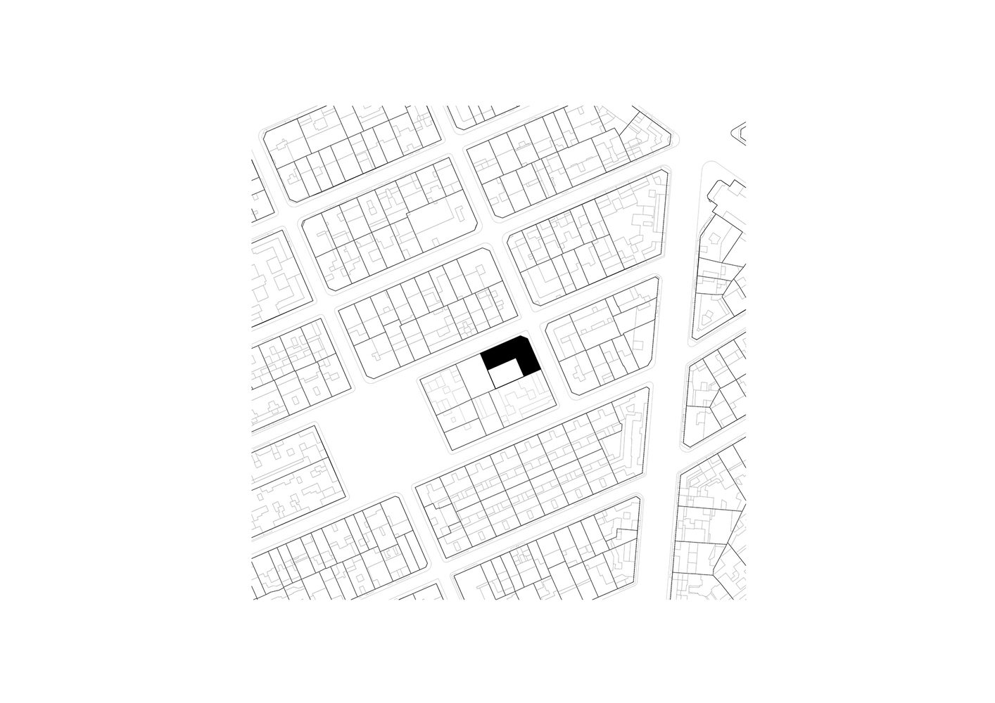 The blocks were stacked to build load-bearing walls perpendicular to the street, supporting cross-laminated timber ceilings. On each floor, the walls reduce in thickness by 10 cm, allowing direct support of the timber panels, facilitating the speed of execution of the entire structure.