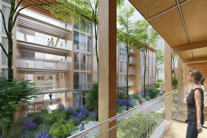 The use of wood, besides actually limit site nuisance, can give a new identity instead. By creating an urban sequence in the tradition of Parisian passages, the project proposes to give a strong identity to a property without a soul: an urban landscape where architecture and nature are accompanied and contrasted with the mood of the busy streets.