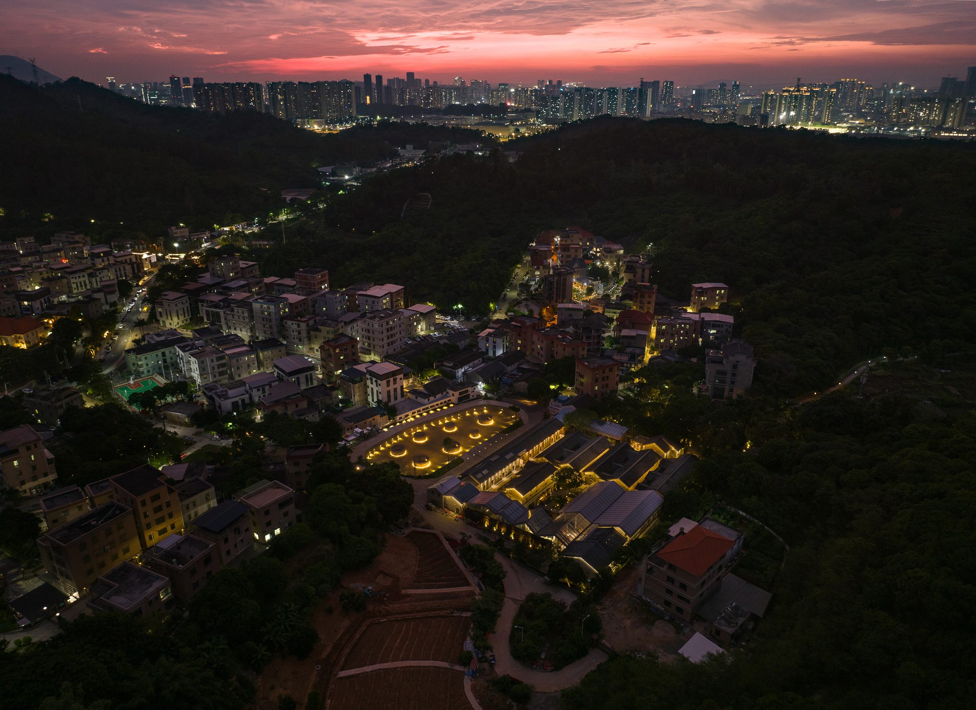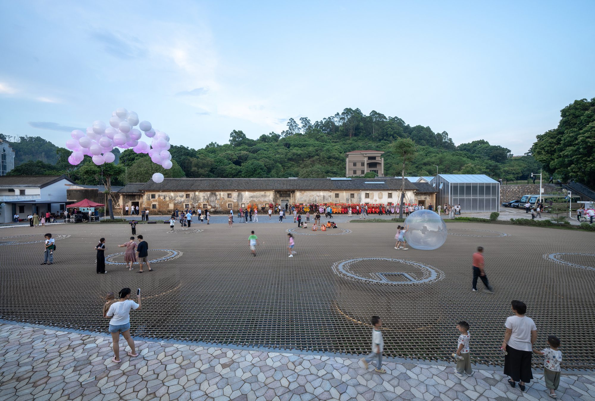 Soft Square in Changshou Village, Preface. China’s rural revitalization initiative emphasizes leveraging urban resources to support rural development. A key strategy involves developing tourism to attract capital and industries, foster cultural engagement, promote population retention, and facilitate the settlement of new residents in rural areas. Integrating cultural projects into rural settings is a new attempt in this regard. In Changshou Village, located in the Pingshan District of Shenzhen, the esteemed Chinese performing art studio, Longma Studio, has embarked on an experimental endeavor to establish a theater commune. This commune is intended to serve as a hub for regular rural art performances, encompassing the entire process from creation and rehearsal to staging dramas. To support this endeavor and accommodate the increasing number of audiences and tourists, architect Zhu Xiaodi was commissioned to steer the village’s overall planning and the design of key areas.