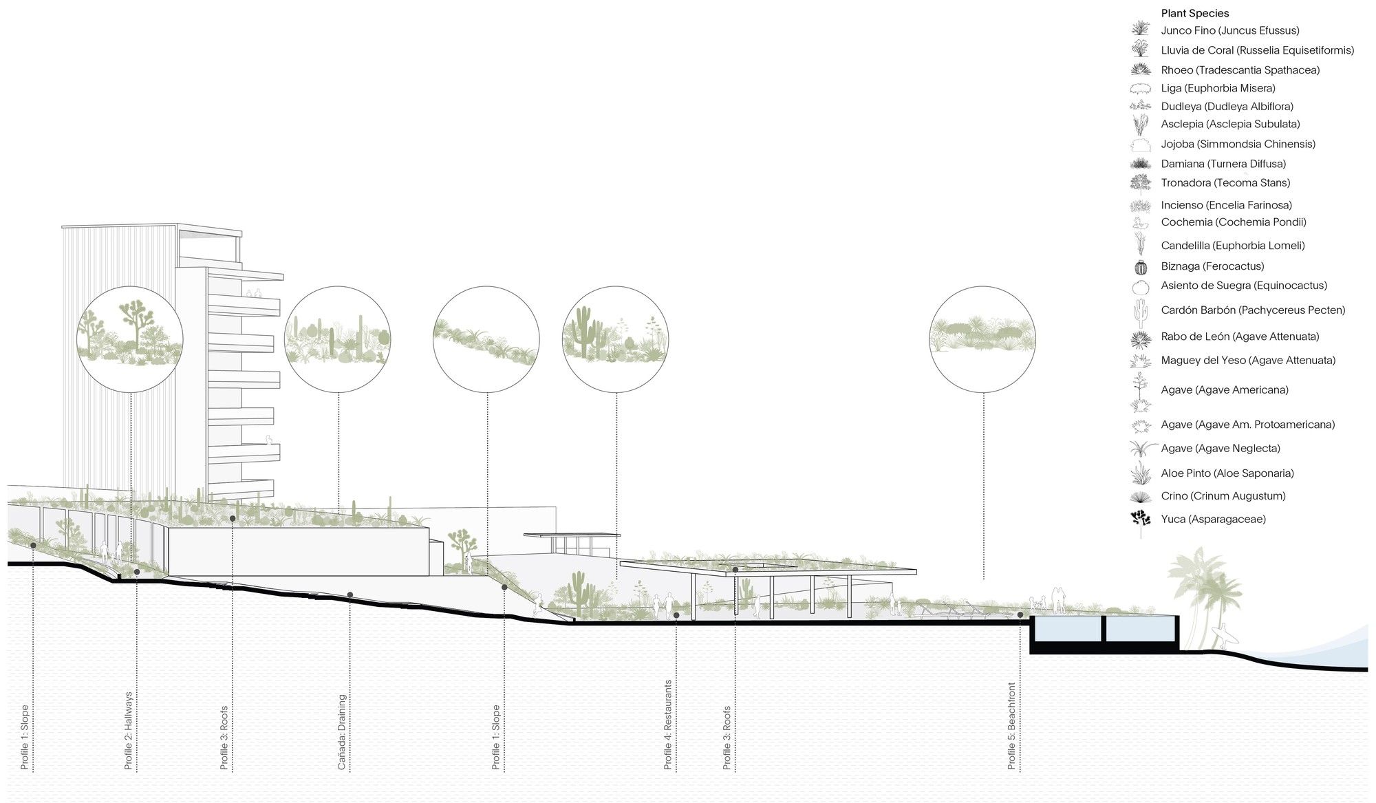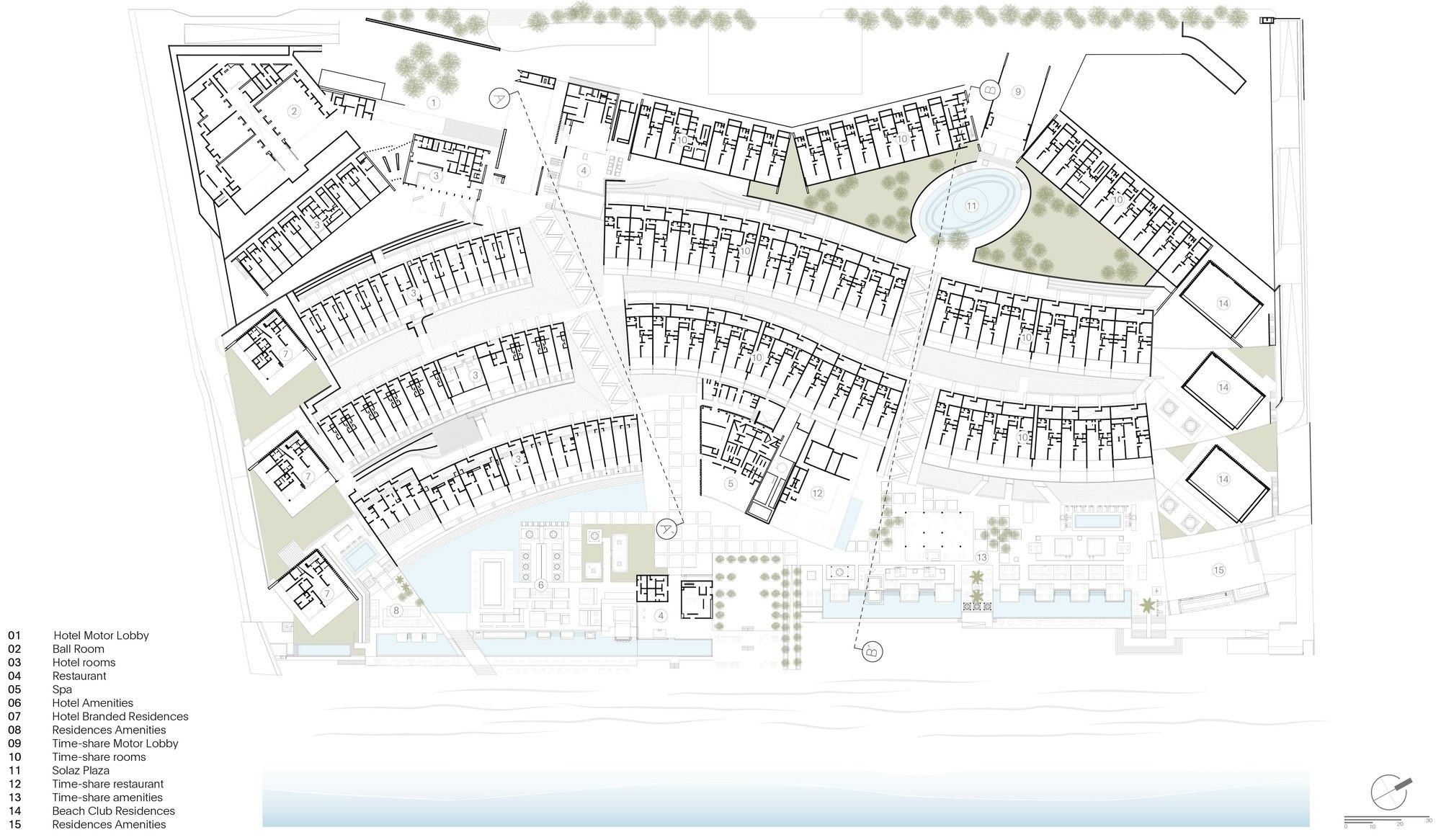 The presence of Solaz in Los Cabos is notable thanks to the way the architecture is woven into an integrated landscape project, created in partnership with Gabayet 101 Paisaje. The palette of plants was complemented with further native species according to the landscape design and the intention of each space. In this way, the architecture and landscaping harmonize with the external walkways, passages, outdoor amenities, lobbies, restaurants, green roofs on the volumes that descend to the sea, and so on. These landscaped areas seek to imitate the local vegetation and its unique natural setting. The presence of Solaz in Los Cabos is notable thanks to the way the architecture is woven into an integrated landscape project, created in partnership with Gabayet 101 Paisaje. The palette of plants was complemented with further native species according to the landscape design and the intention of each space. In this way, the architecture and landscaping harmonize with the external walkways, passages, outdoor amenities, lobbies, restaurants, green roofs on the volumes that descend to the sea, and so on. These landscaped areas seek to imitate the local vegetation and its unique natural setting.