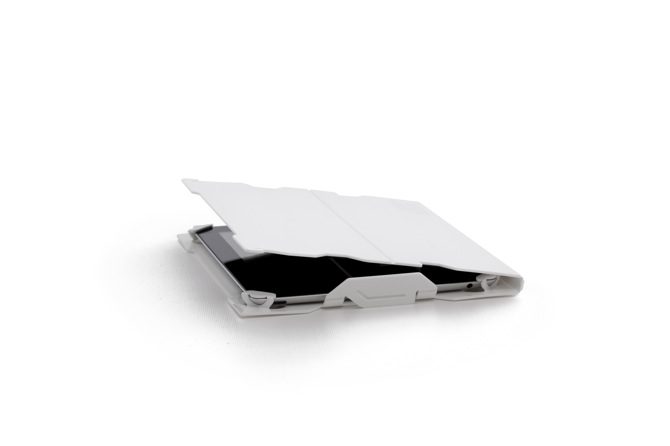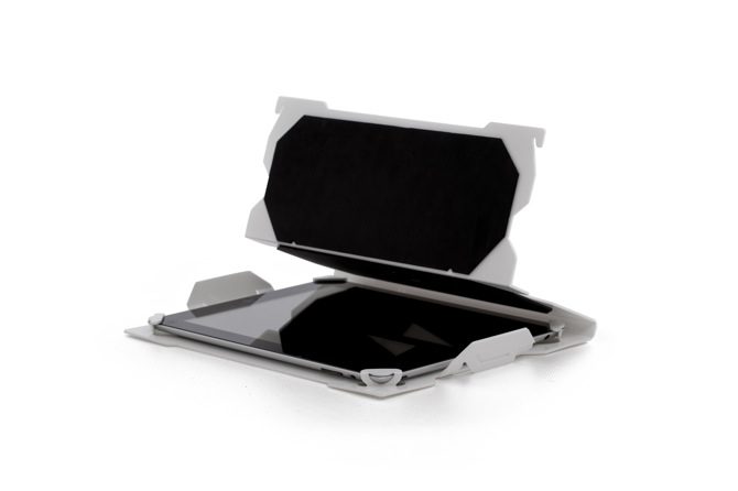 Working-comfort on the fly is a guiding principle in the cover’s design. The result is a cover that is convenient to use in the subway, on your couch, or any other any situation, as well as on your tabletop. The unique folding mechanism creates a workstation that shines in ergonomics and flexibility. The tablet covers for iPad models 2, 3 and 4 are available via solid-gray.com for €45,- including free worldwide shipping.