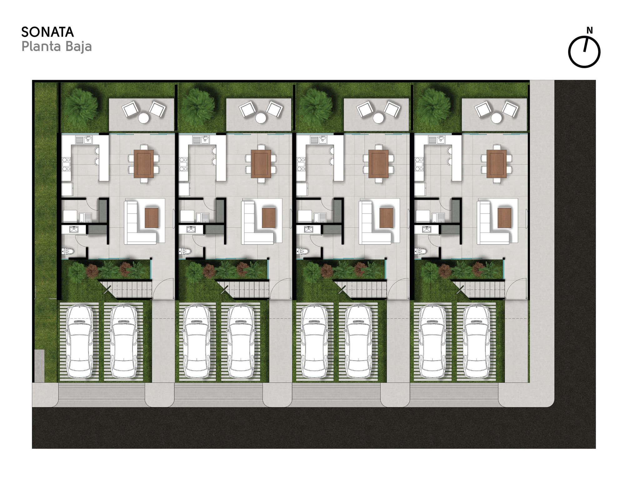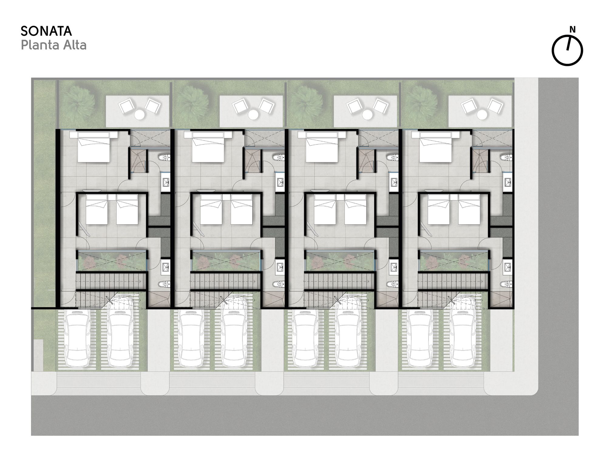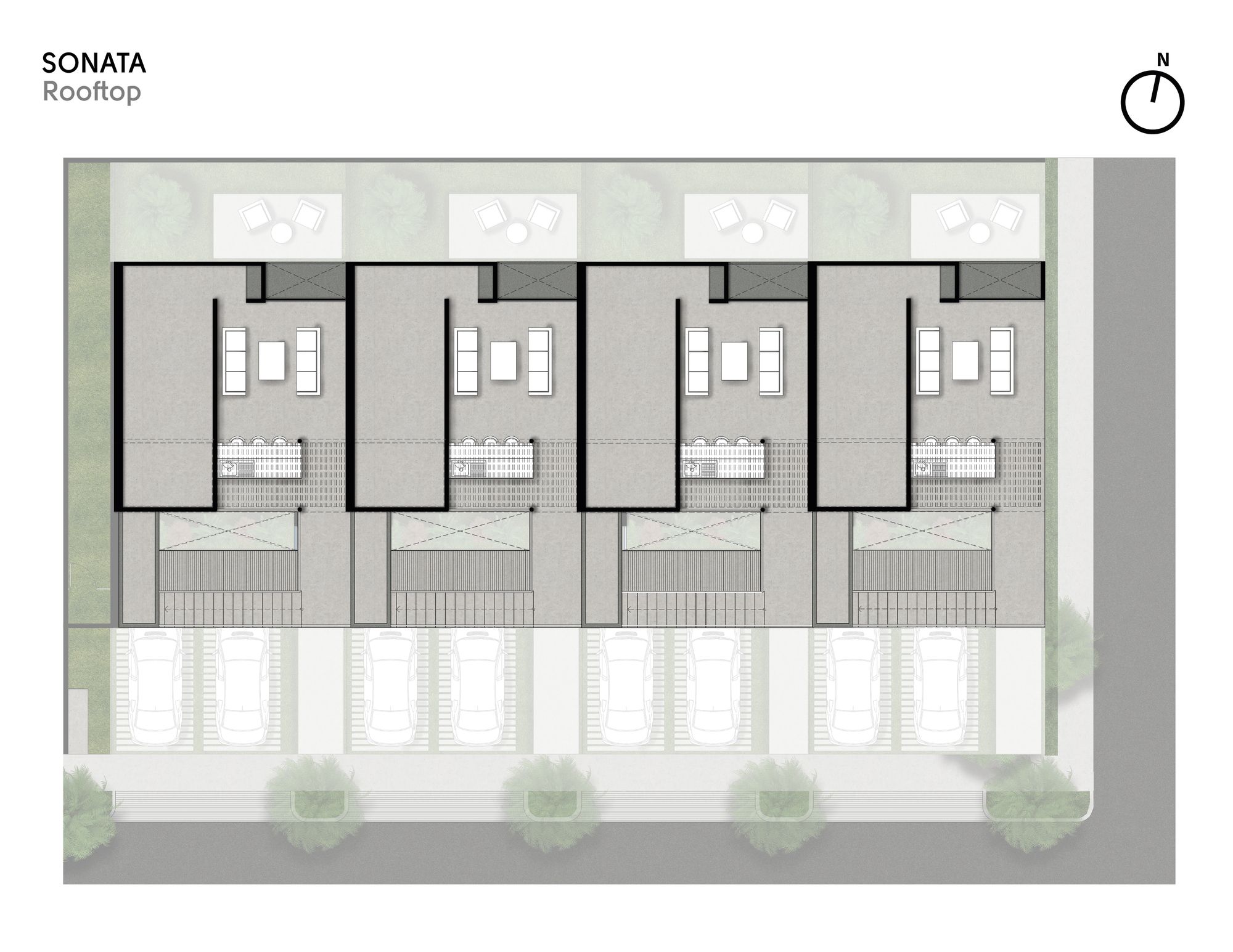 Its architectural program is simple, social areas on the ground floor and on the roof, vertically containing two bedrooms that are on the first level, a private area that can only be accessed through a corridor on the same level. Stairs not only play an important role in terms of visual privacy from the outside, but also prevent the circulation of visitors through private areas of the living units when accessing the roof. Each unit has a backyard and parking spots for two vehicles, which will soon be protected from the sun by the foliage of trees. A project that initially revolved around money, ended up revolving around intimacy, privacy, harmony, and curiosity. With the same architectural program and price as many, but a sincere project, where the function and aesthetics are one, where complexity and simplicity blend to become Sonata.