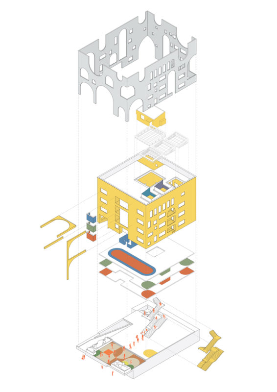 According to Martin Heidegger, reason begins with encountering the unfamiliar. This implies that familiar things are not easily understood. To foster creativity in children, it is important to provide unstructured spaces. Staggered and overlapping arched openings can create unfamiliar and varied shapes, which can ignite curiosity. Each child may interpret these shapes differently, recalling unique scenes or objects. This curiosity serves as a motivation to understand and learn.