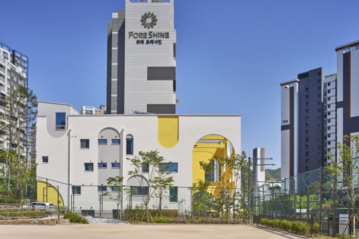 Songpa Wirye Kindergarten is a public kindergarten that was built alongside the construction of a new city. Kindergartens are considered as urban planning facilities, and their location and size are determined during the city planning process. However, in this new city that mainly focuses on providing housing, the need for a small public education facility for infants and toddlers seems to have been overlooked. Songpa Wirye Kindergarten site is situated between the relocation of Deoksu High School from Gangbuk and a large-scale apartment complex, which posed several challenges in establishing a desirable project from the start.
