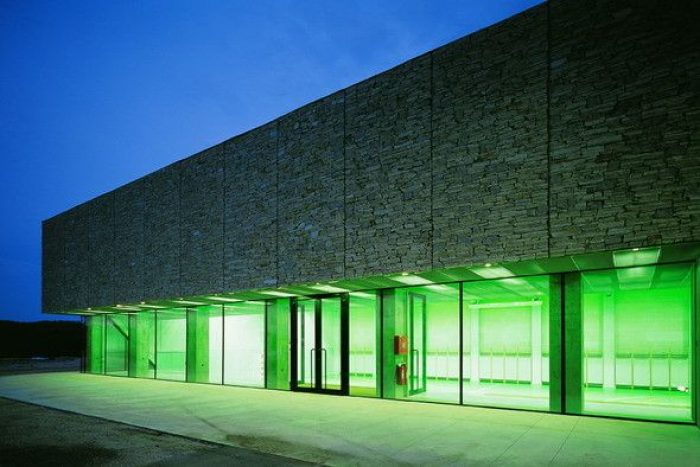 There’s just something sexy about a building with mysterious green-glowing windows. Now of course this green glow could signify the presence of a mad scientist, in which case- not so sexy. But more probably it’s just that someone set up and took one hell of a money shot photo. Sexy. This is the Sports Hall Bale, designed by 3LHD and built in Bale, Croatia.