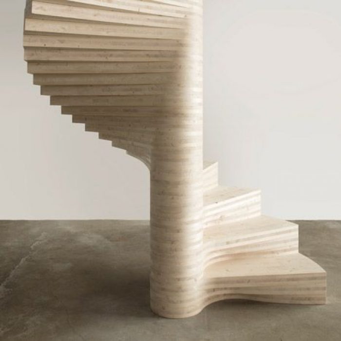Made from milled layers of cross-laminated timber with a spiral shape.
