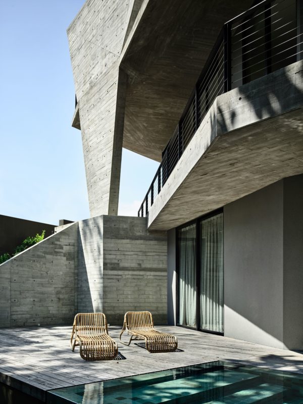 On the first storey, the planning sought to maximise the porosity through the site, revealing the view towards the greenery at the back. Designing for porosity was also a response to the site constraint, a strategy to make the site appear deeper than it actually is. As one approaches the house through the long driveway, s/he is not confronted with a blank wall or garage that abruptly terminates one’s movement, but greeted with a green expanse that is welcoming both to the inhabitants and visitors alike. The entrance experience – a particular interest in our studio’s oeuvre – is enhanced. Besides enabling effective cross ventilation vital for our climate, the openness allows for borrowed views as well as daylight to filter into the living room.