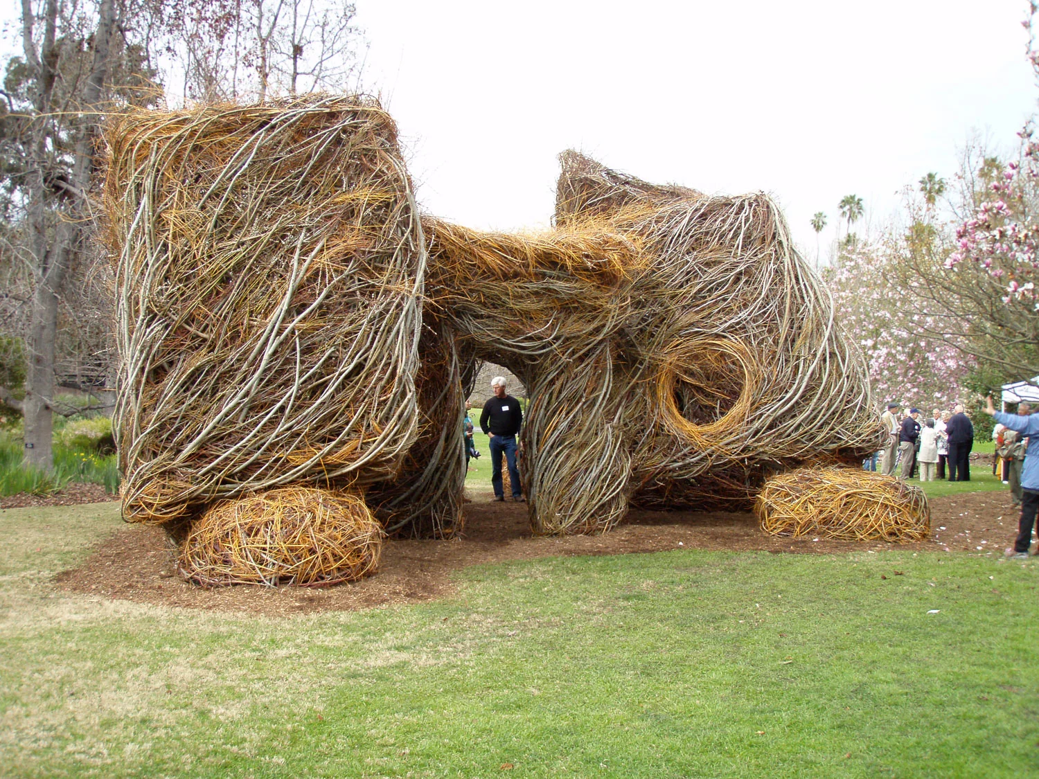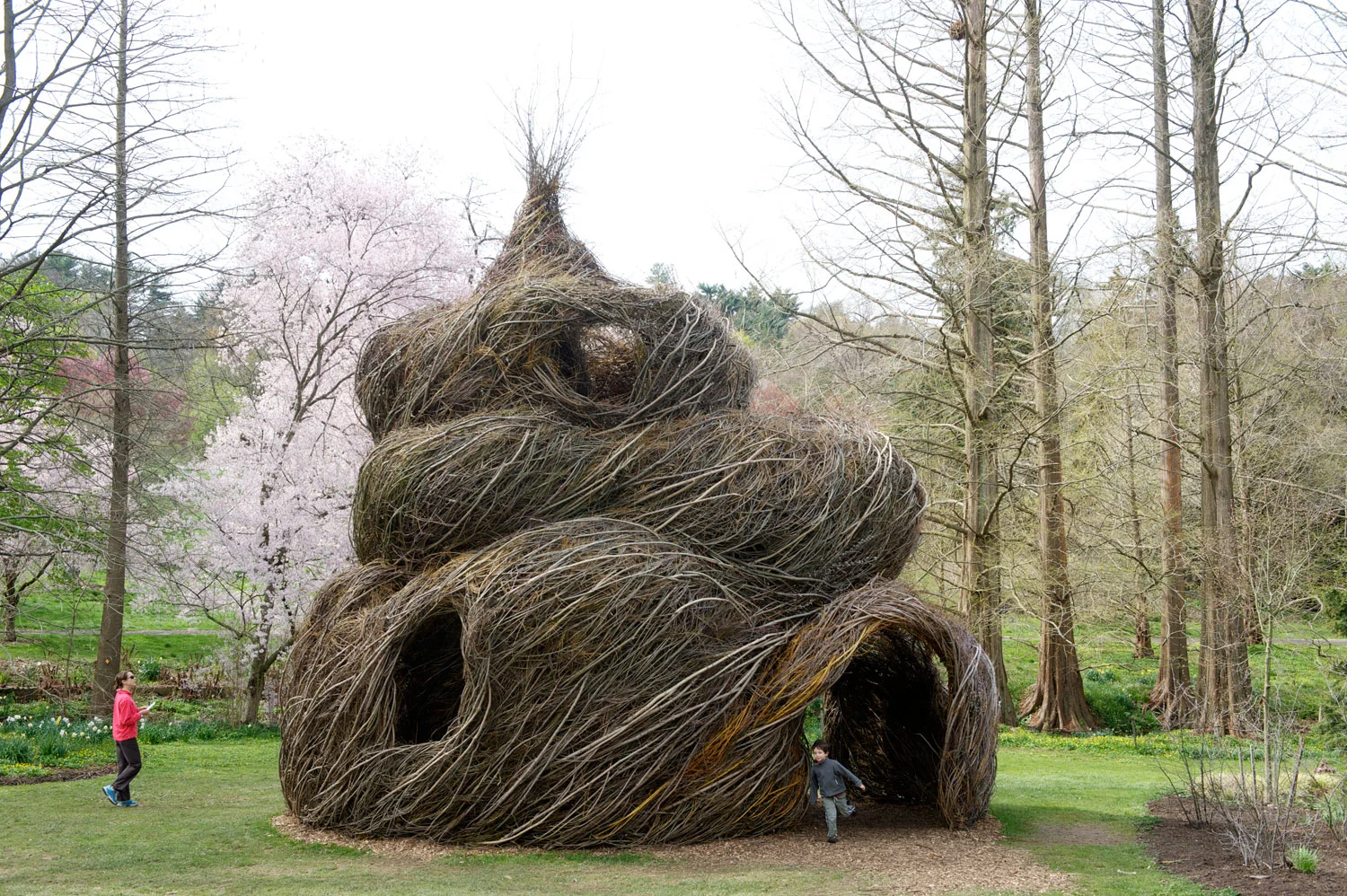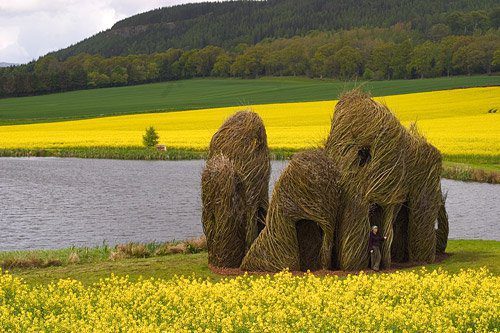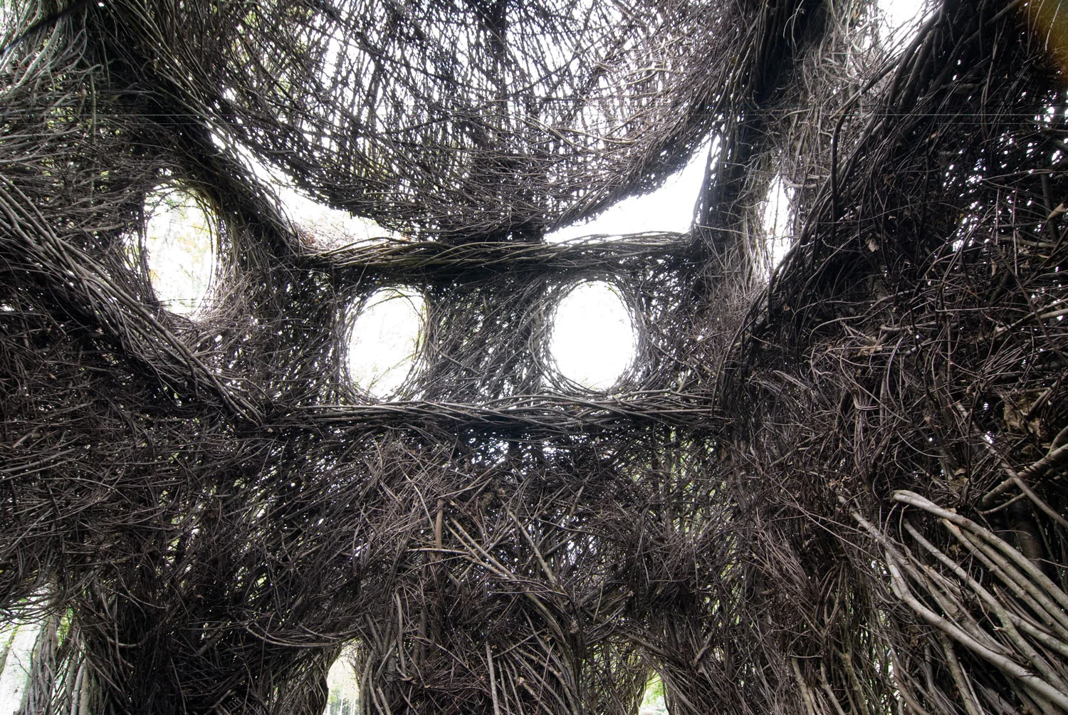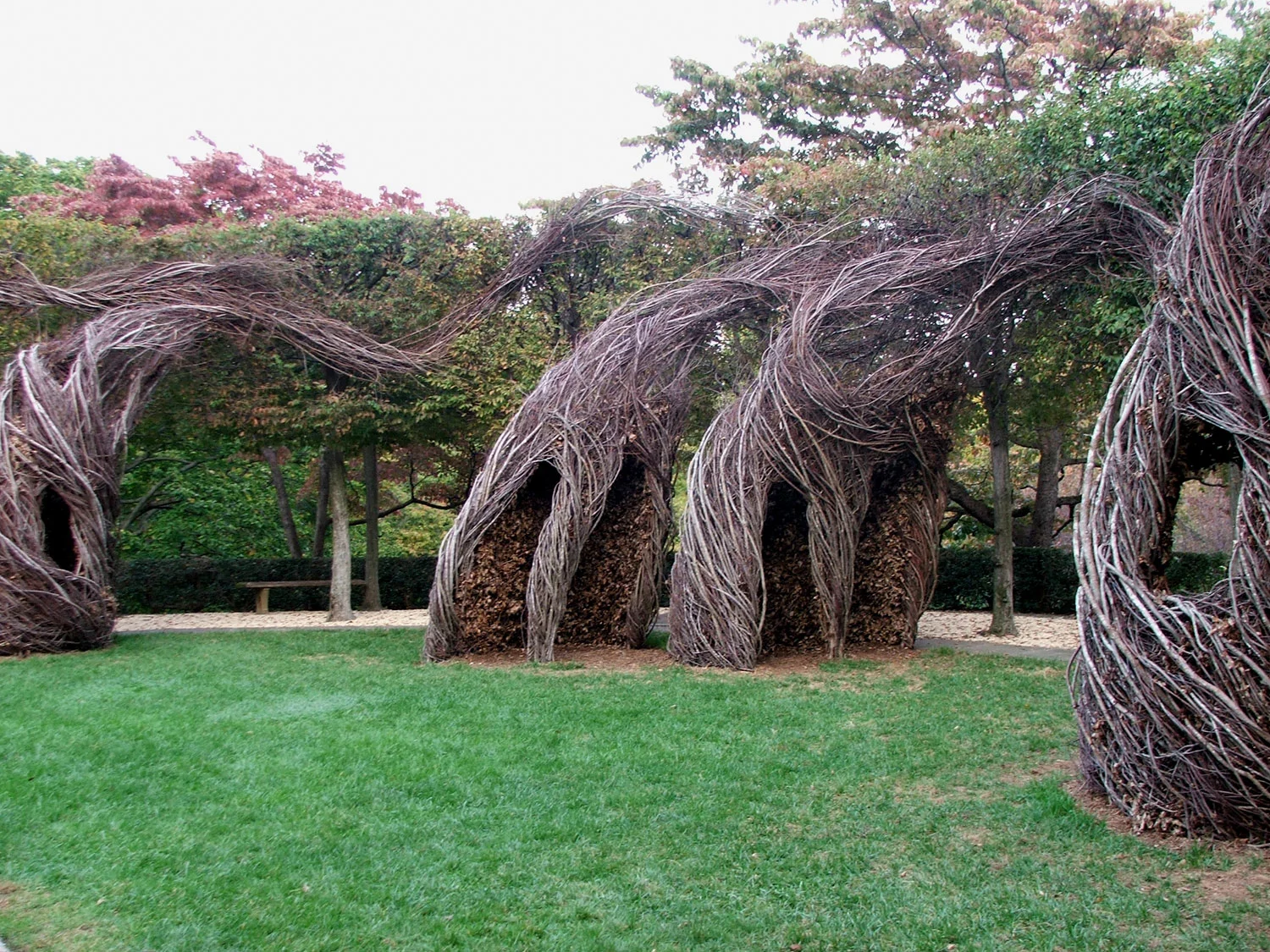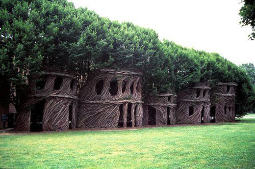 I suppose it should not surprise me one bit. I remember when I was young, my mother liked to create wreaths for the christmas decorations. And for all that I saw them, I never realized that the ‘dead’ but very pliable sticks which were woven to make those wreaths, were suited for uses other than circles! Artist Patrick Dougherty demonstrated with exceptional finesse and on a large scale none-the-less that it is in fact possible. And beautiful too.
