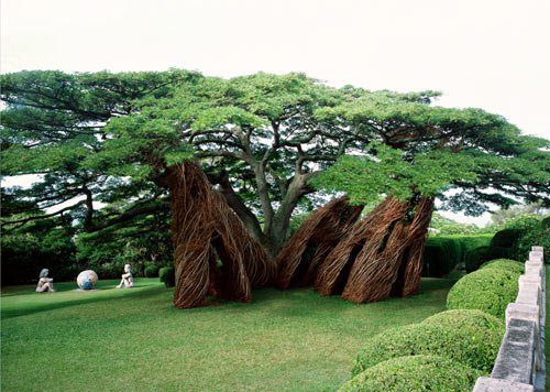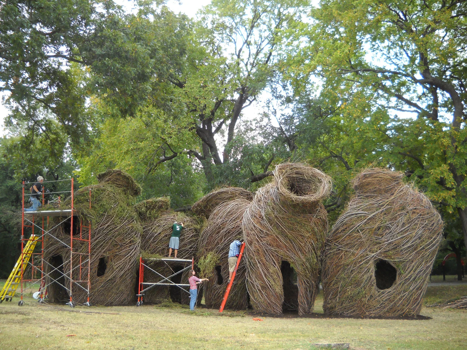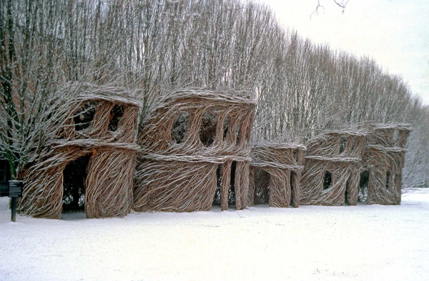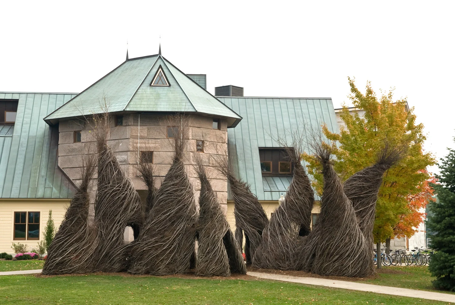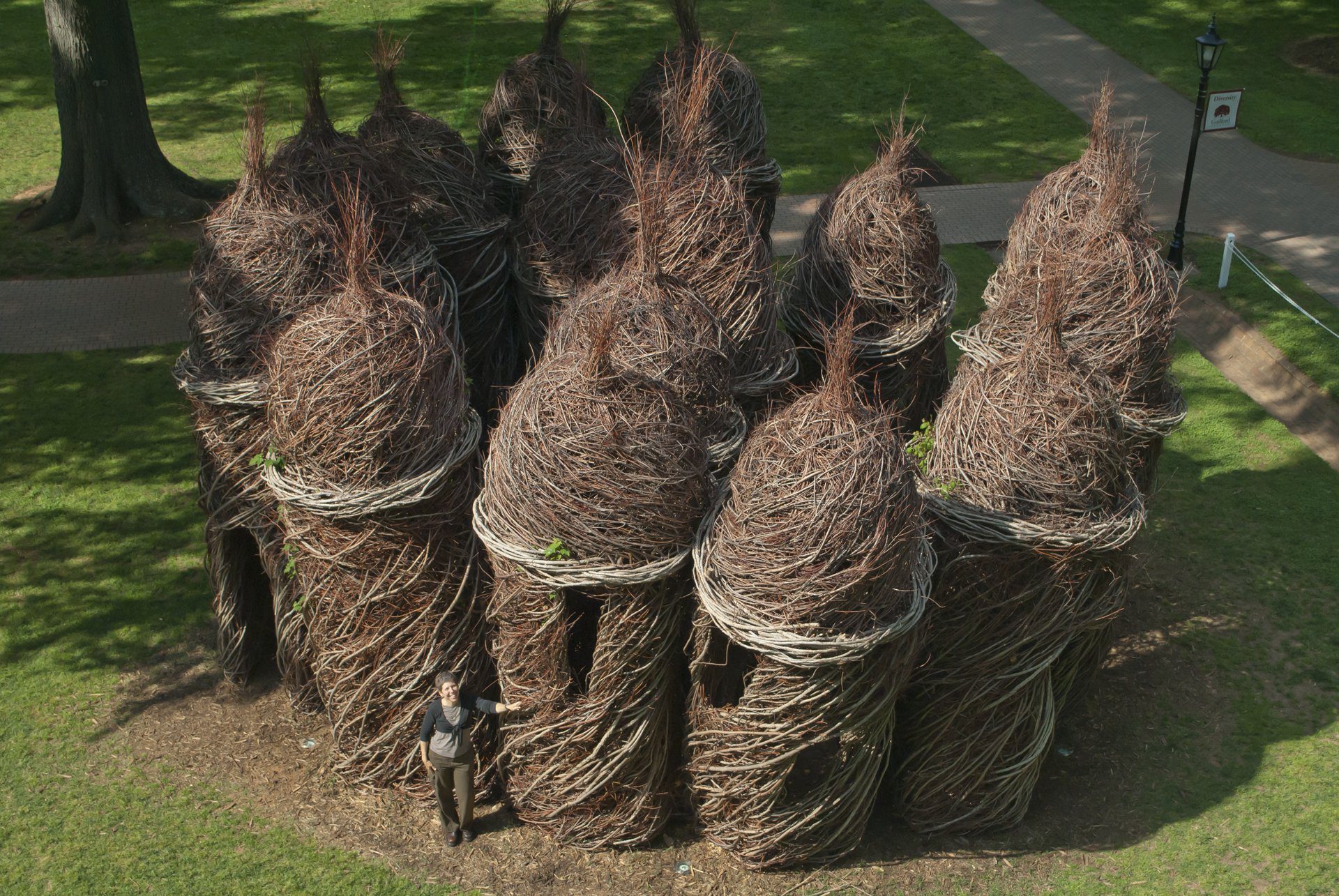 I suppose it should not surprise me one bit. I remember when I was young, my mother liked to create wreaths for the christmas decorations. And for all that I saw them, I never realized that the ‘dead’ but very pliable sticks which were woven to make those wreaths, were suited for uses other than circles! Artist Patrick Dougherty demonstrated with exceptional finesse and on a large scale none-the-less that it is in fact possible. And beautiful too.