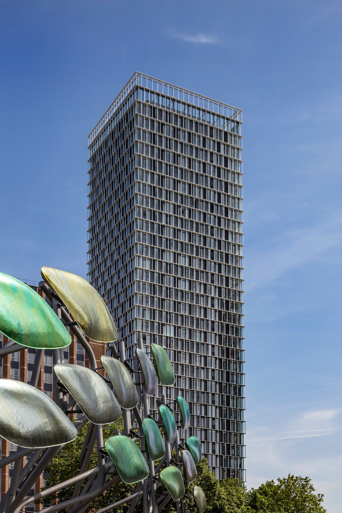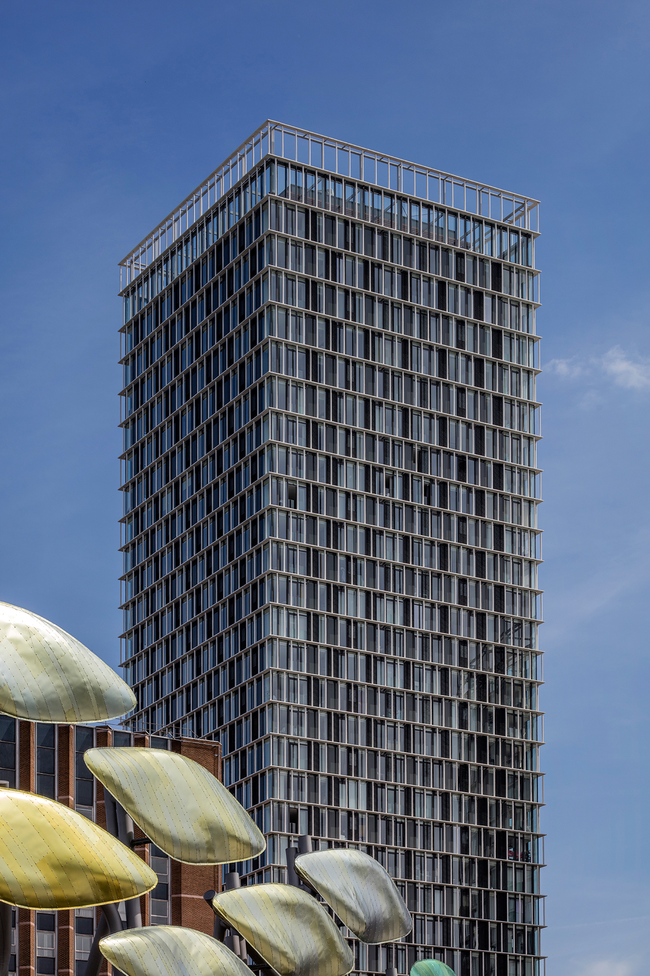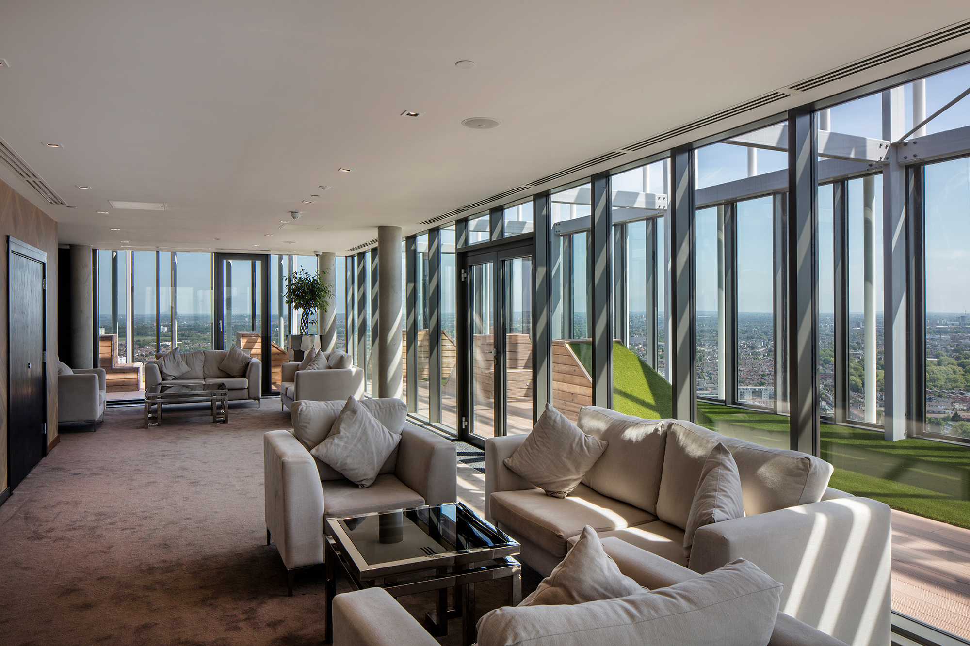 With 342 new homes, the buildings comprise of an 11 storey brick-clad building, with retail and office accommodation at ground to second floor levels and 62 apartments above, and a 36 storey glazed building, with retail accommodation at ground floor level and 280 private apartments above plus a gym, a residents’ lounge at 35th floor level, and a stunning rooftop garden offering uninterrupted panoramic views across the Lea Valley, the Olympic site and further west towards the City of London.