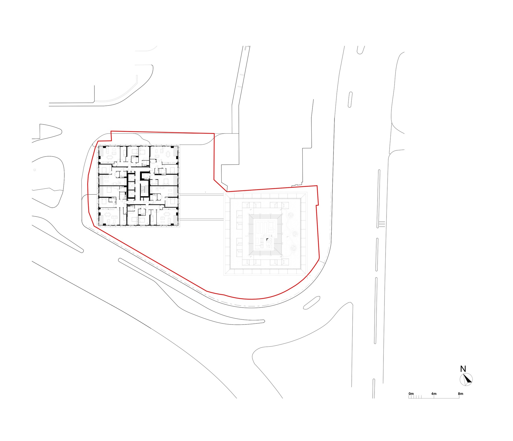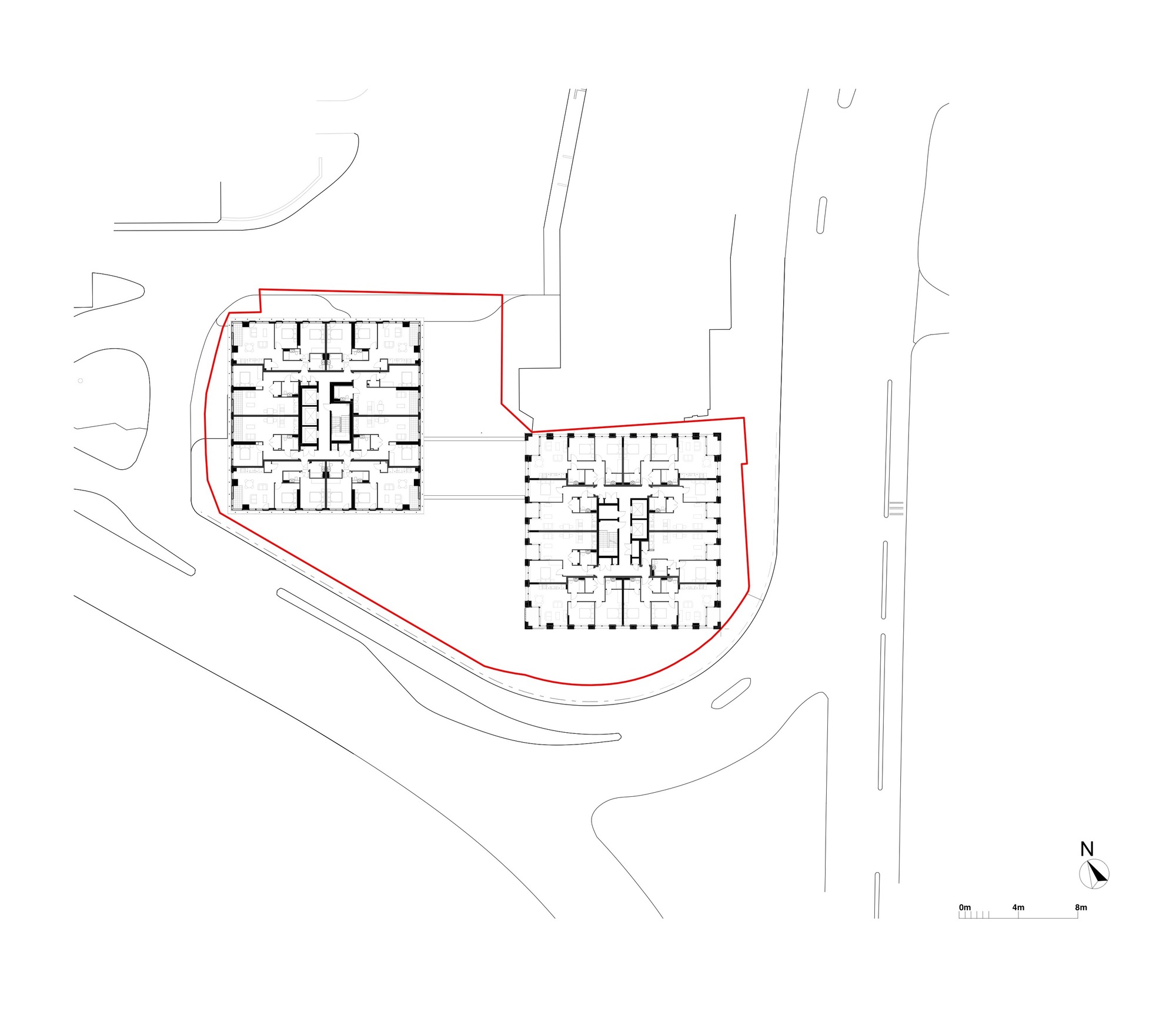 Entry into the residential cores of each building is via a linked podium structure featuring the main concierge space and shared entrance lobby.