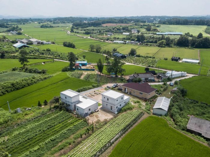 Designed by stpmj, Stratum House seeks a new way of concrete casting method simulating a geologic formation. Concrete works in a combination of cement, water, and aggregate. Cement is mixed with water to form a paste, and its properties are strengthened together with aggregates. These pastes wrap and fill aggregates of various sizes and become hardened. The project started with a curiosity of concrete composition, its casting process, and reaction on the results from testing the changes of its constituents.