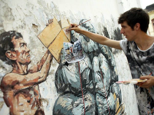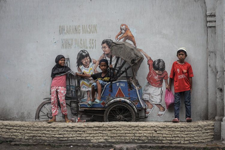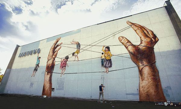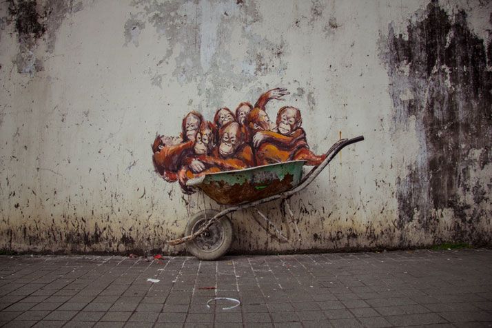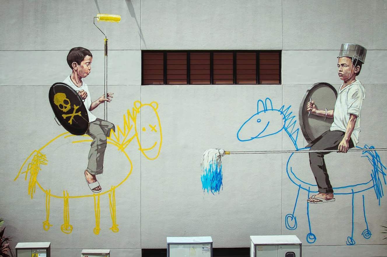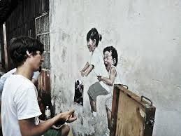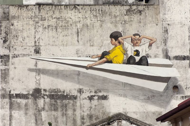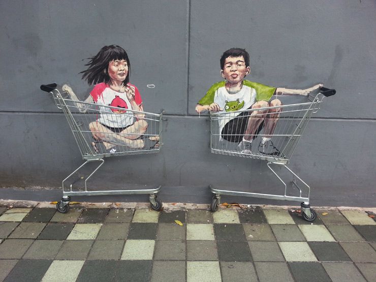 Artist Ernest Zacharevic created four new street art works represent figures of mischievous children that are seen interacting with surrounded environment in Malasia. More photos can be can see on Zacharevic’sFacebook.