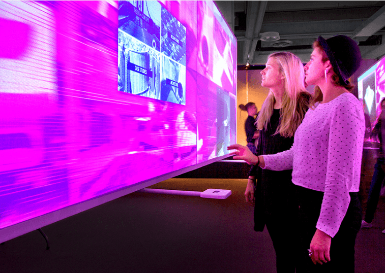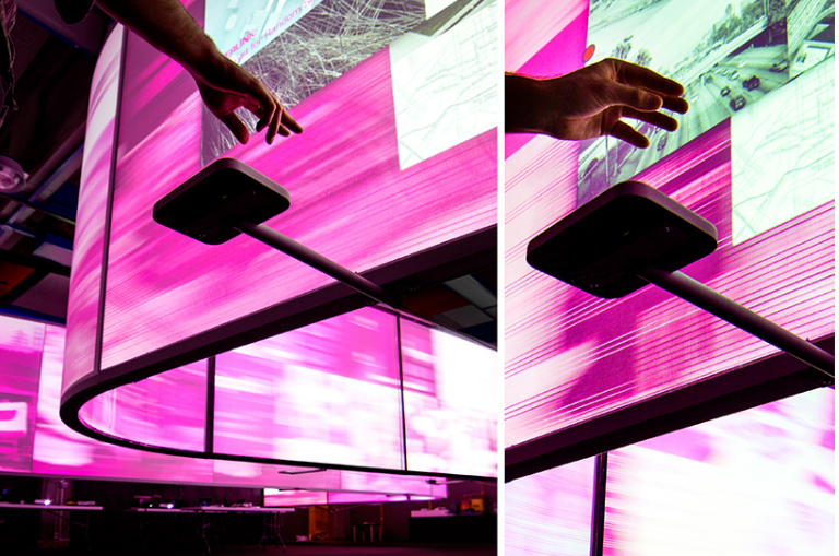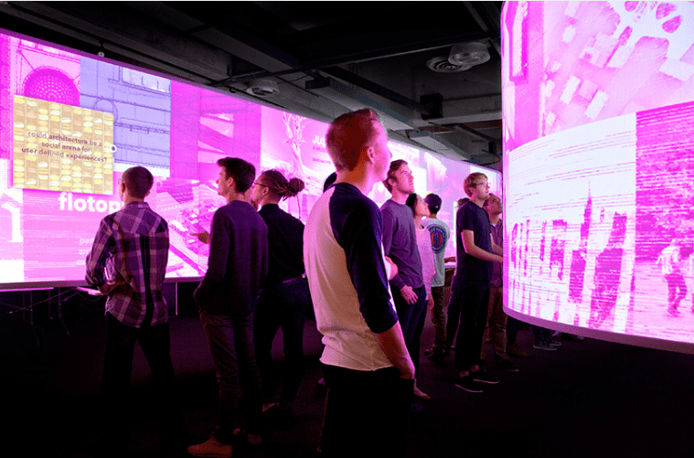 Instead of going from piece to piece, as you would normally do, this approach offers a variety of exploring options, tailored for every person in particular. The commands are being sent by leap motion 3D controllers, on a wide circular screen that is divided into several parts, every one of which with it’s own “button”. It is an excellent idea to show a product, either a design or an art project, and especially an architectural one, because you can simply target everyone at the same time, with no need to focus on a specific person.