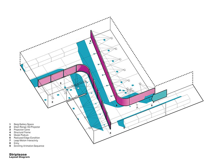 Striptease , imagine going to an exhibition and being able to explore it without physically wandering around. All you have to do is sit in front of a screen and allow the projects exhibited to come in front of you – an idea brought to life by the students of final Poly College of Architecture and Environmental Design, UK, for the al 5th year undergraduate project. The name? Striptease. “Striptease” was the final exhibition of 5th year undergraduate architectural thesis projects produced by the 2014-2015 Jackson Studio, and featured 18 projects that were each a unique critical inquiry into new possibilities for architecture.