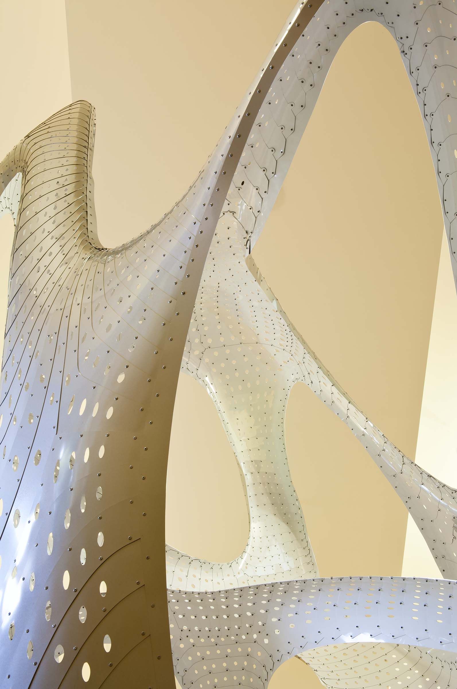 Subdivision is an art installment made mainly of 550 flat tessellated sheets of aluminum. The aluminum takes on an organic for that is aesthetically pleasing.
