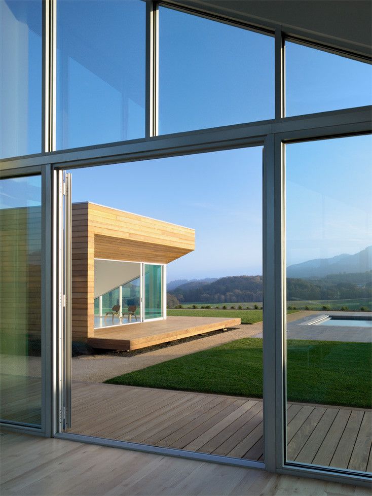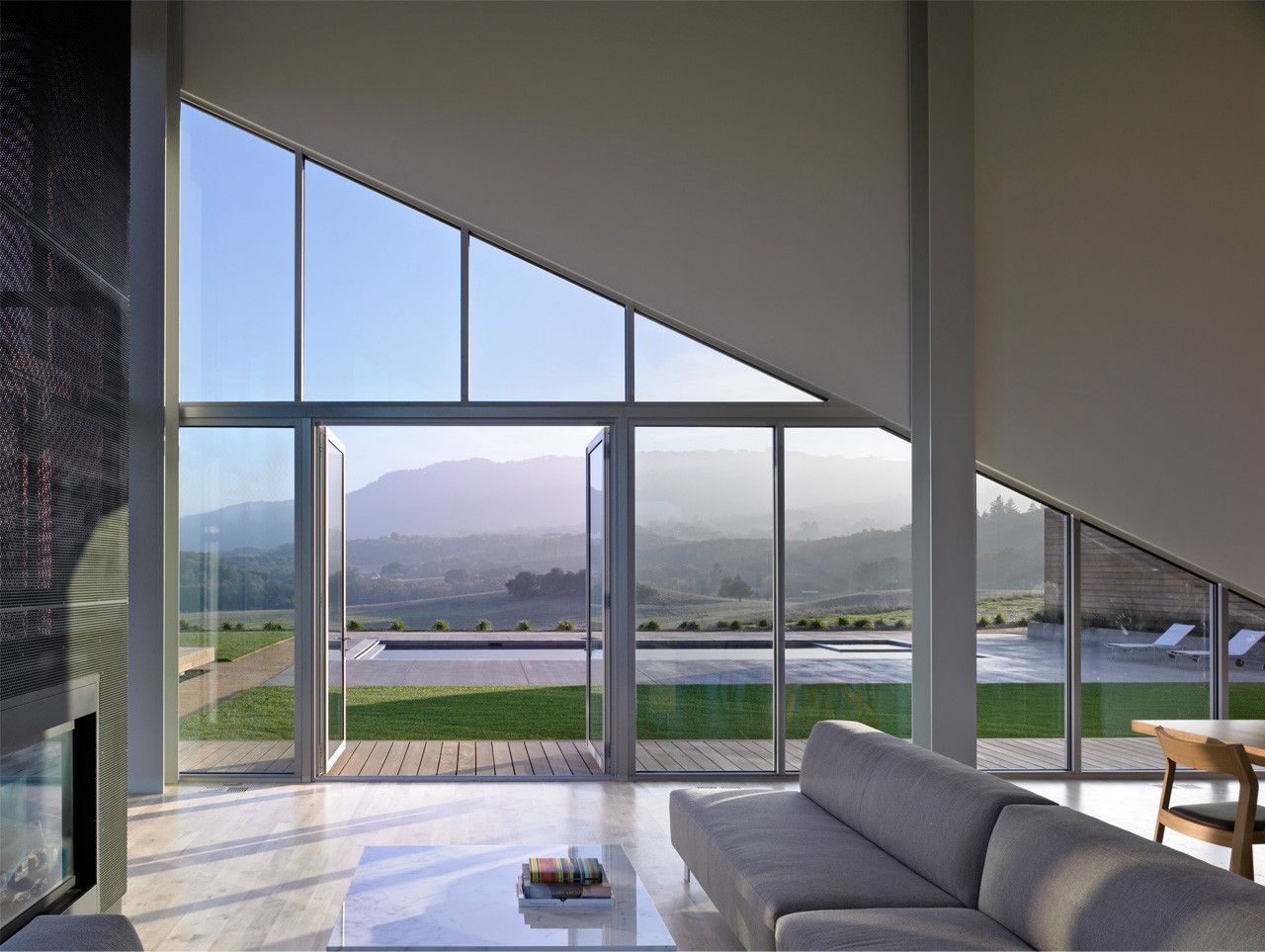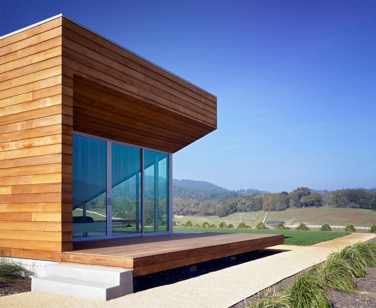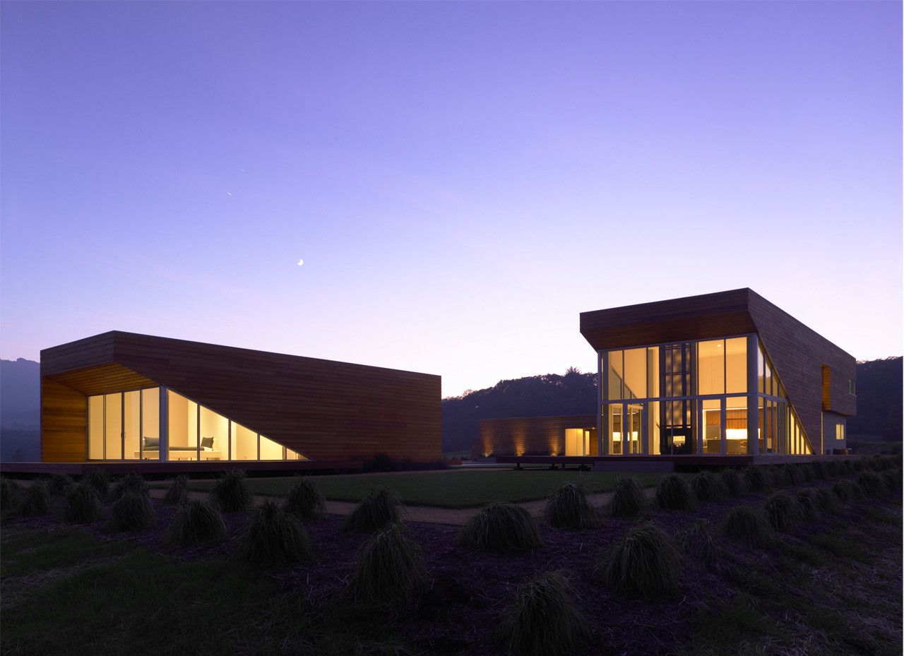 Edmonds + Lee Architects’ Summerhill Residence sits high in the hills of California wine country. Its distinct forms with raised corners mold an outdoor living area and courtyard.