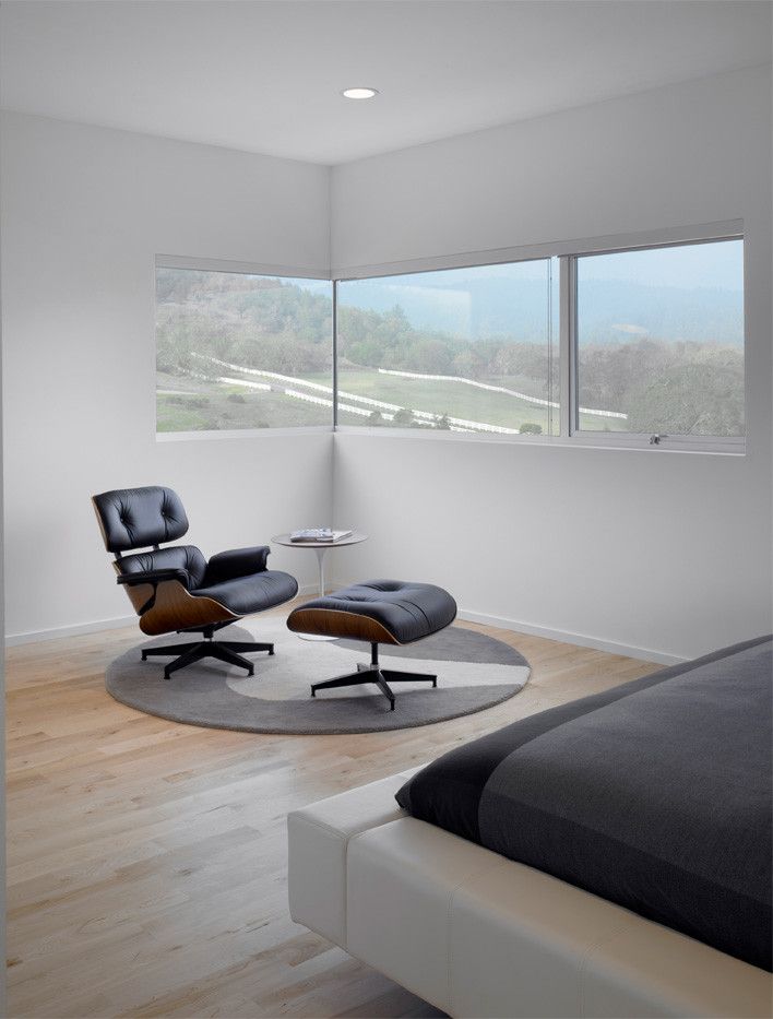 The main and guest houses provide an aesthetic juxtaposition while capturing their own views of the California scenery. Mirroring one another, these two structures vary in dimensionality yet feel interconnected. This also works for the detached garage and can be attributed to a mixture of common materials and a formal language that is consistent throughout each entity. These raised corners of the residential cubes add both formal interests and further serve the architects desire to blend interior and exterior spaces.