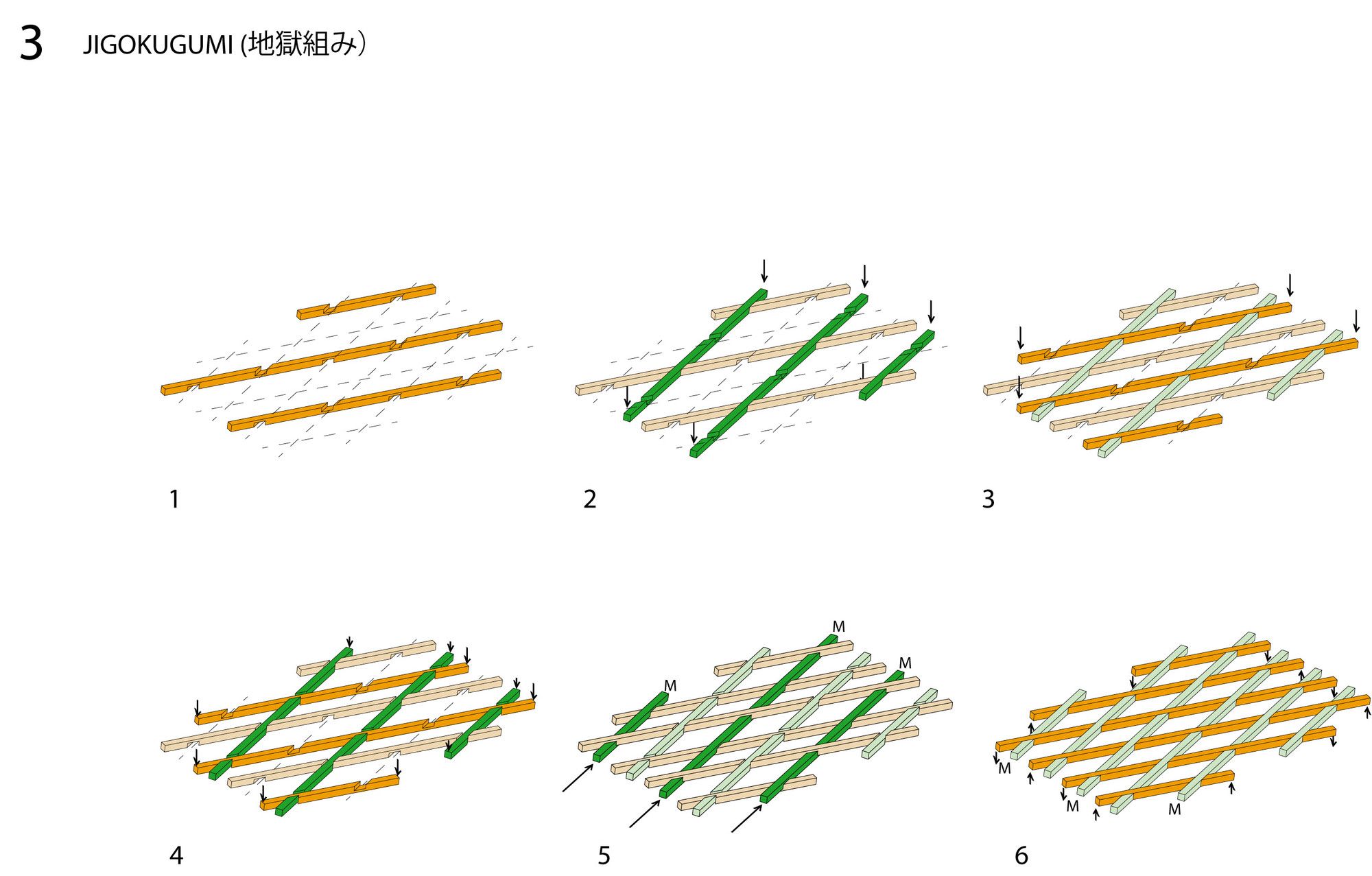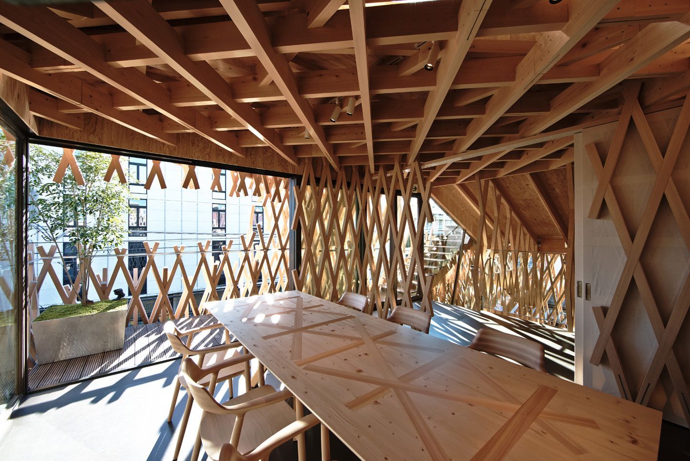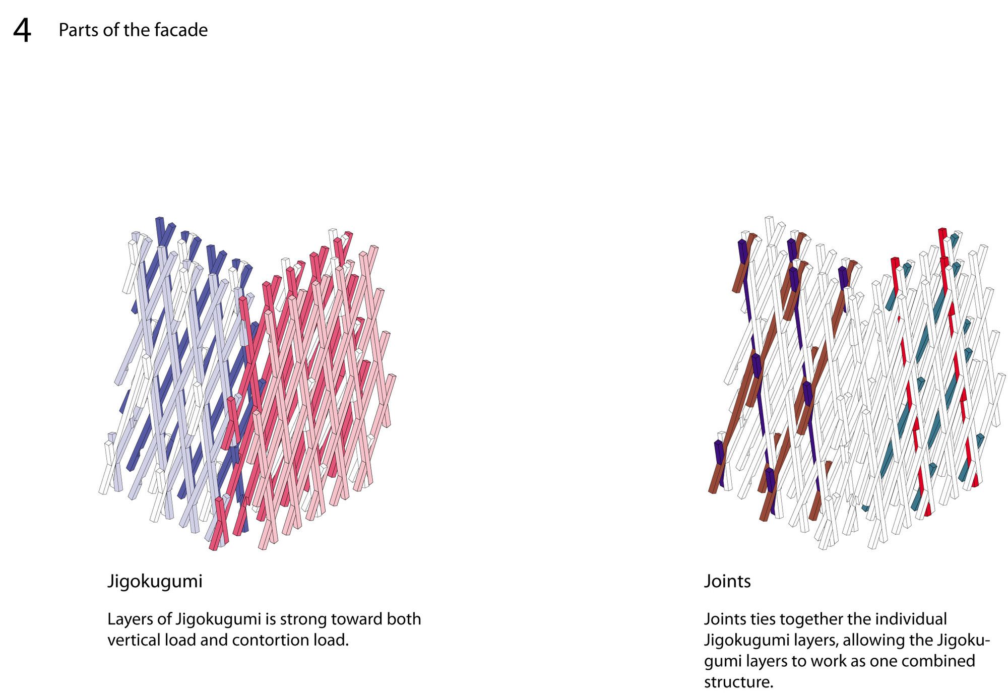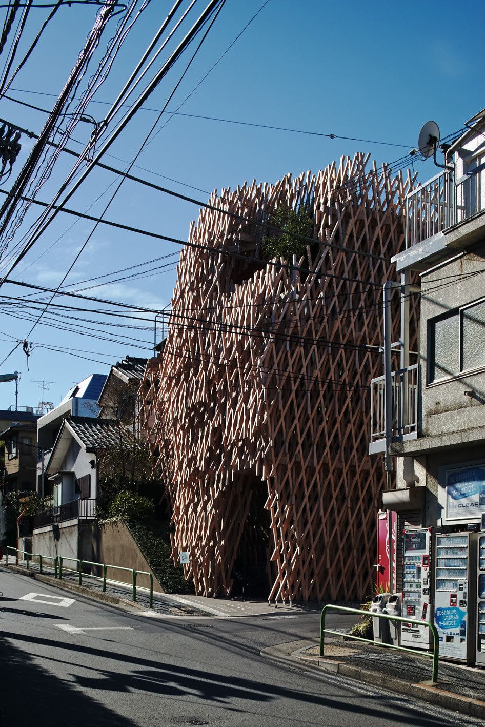 Sunny Hills, Kengo Kuma’s, Sunny hill was inspired from a Bamboo basket joint system called “Jiigoku-Gumi. The delicate façade may appear purely decorative yet performs as the primary structure.