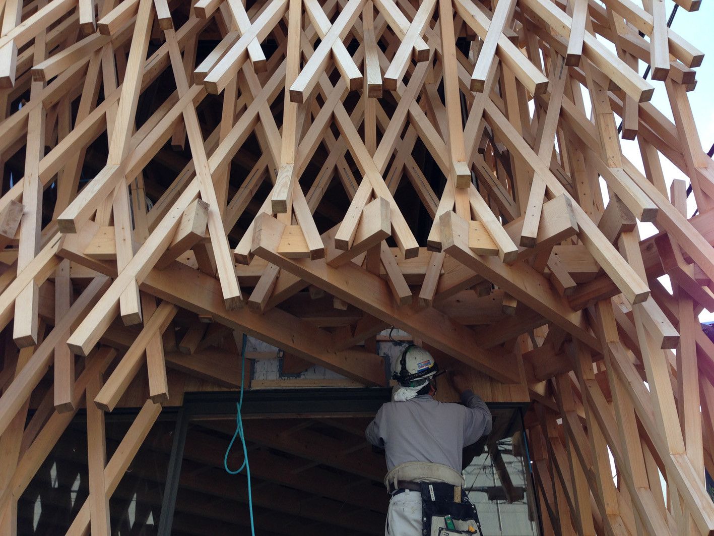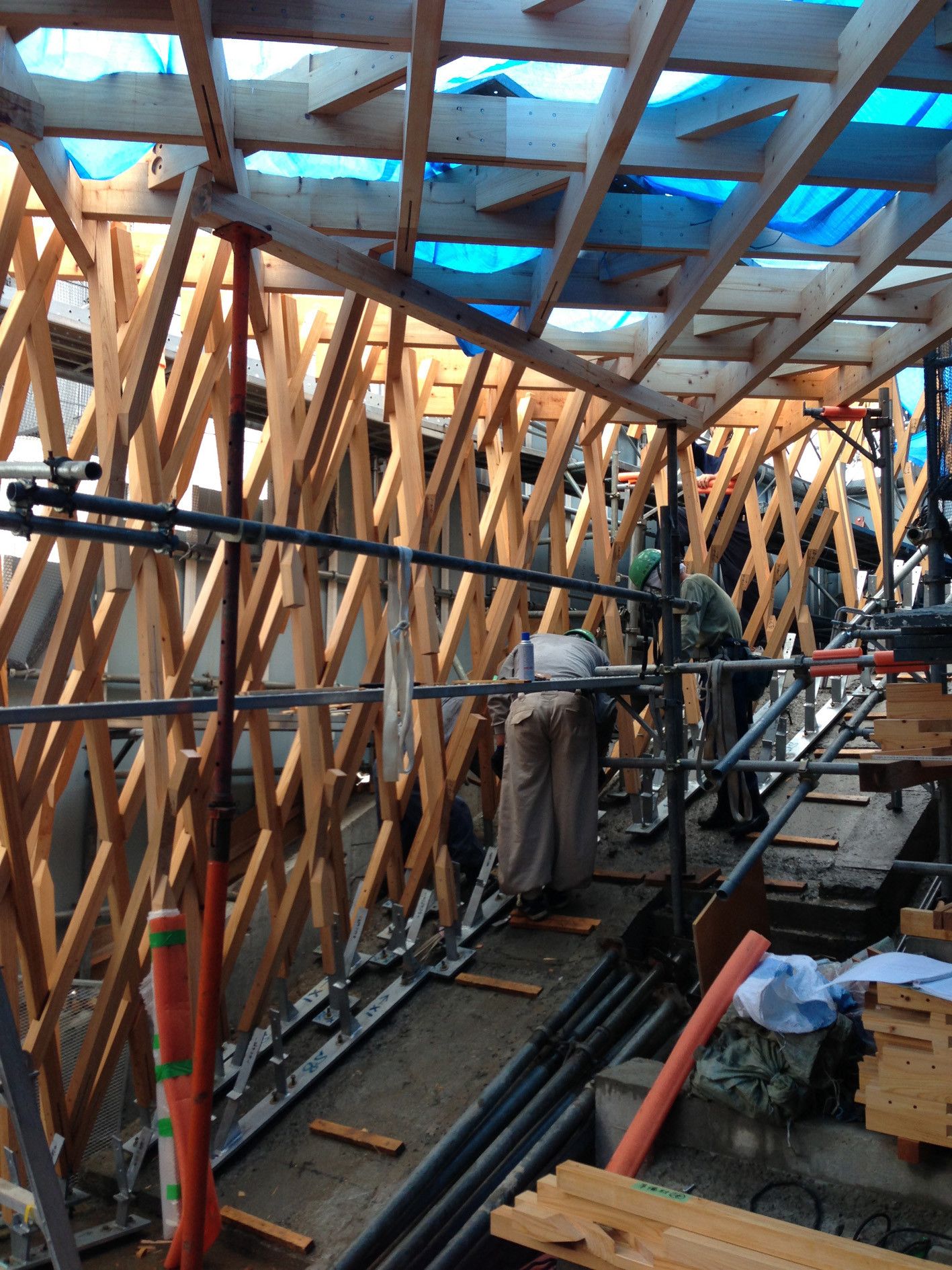 As an entity it acts as a nest for human habitation describing both the versatility of timber and the current innovations in construction and engineering. Integrating parametric design with traditional joinery techniques kengo was able to achieve a high level of complexity yet maintaining the sensuality of a traditional Japanese build.With the current trend in the short lifespan buildings in Japan’s construction industry, the shop’s temporal nature is fitting to its environment. Whilst he delineates strongly from the surrounding context, his building speaks a temporal language that compliments the monolithic surroundings, decreasing the sense of architectural banality.