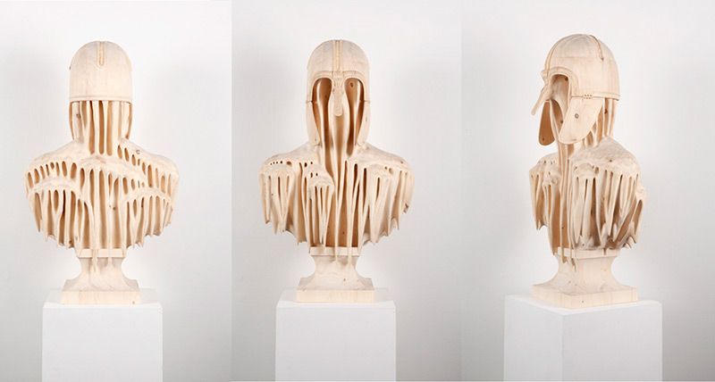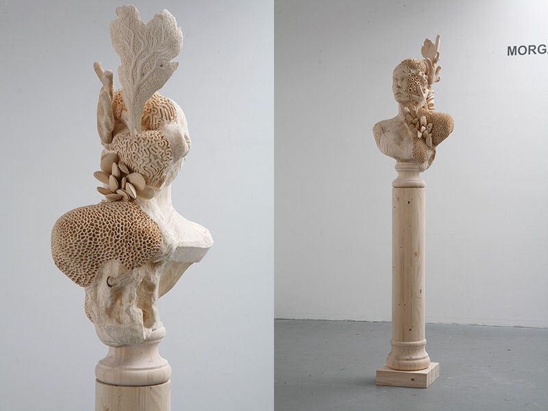 The manmade geometric precision of plate armor is formally opposite of the flowing, organic stalactites and stalagmites. Seen together, these two parts present a striking contrast in form and create a theme of time and the effects of nature. The pose of the figure and the general composition are references to the classical sculpture “The Dying Gaul” of ancient Roman antiquity” said Morgan The artist described the sculpture as a mix of two contradicting sides creating a sense of surrealism when looked at . Adding this organic quality to the classical sculpture is like breaking the beat, disturbing the rhythm of a piece of music, but creating this interesting combination.