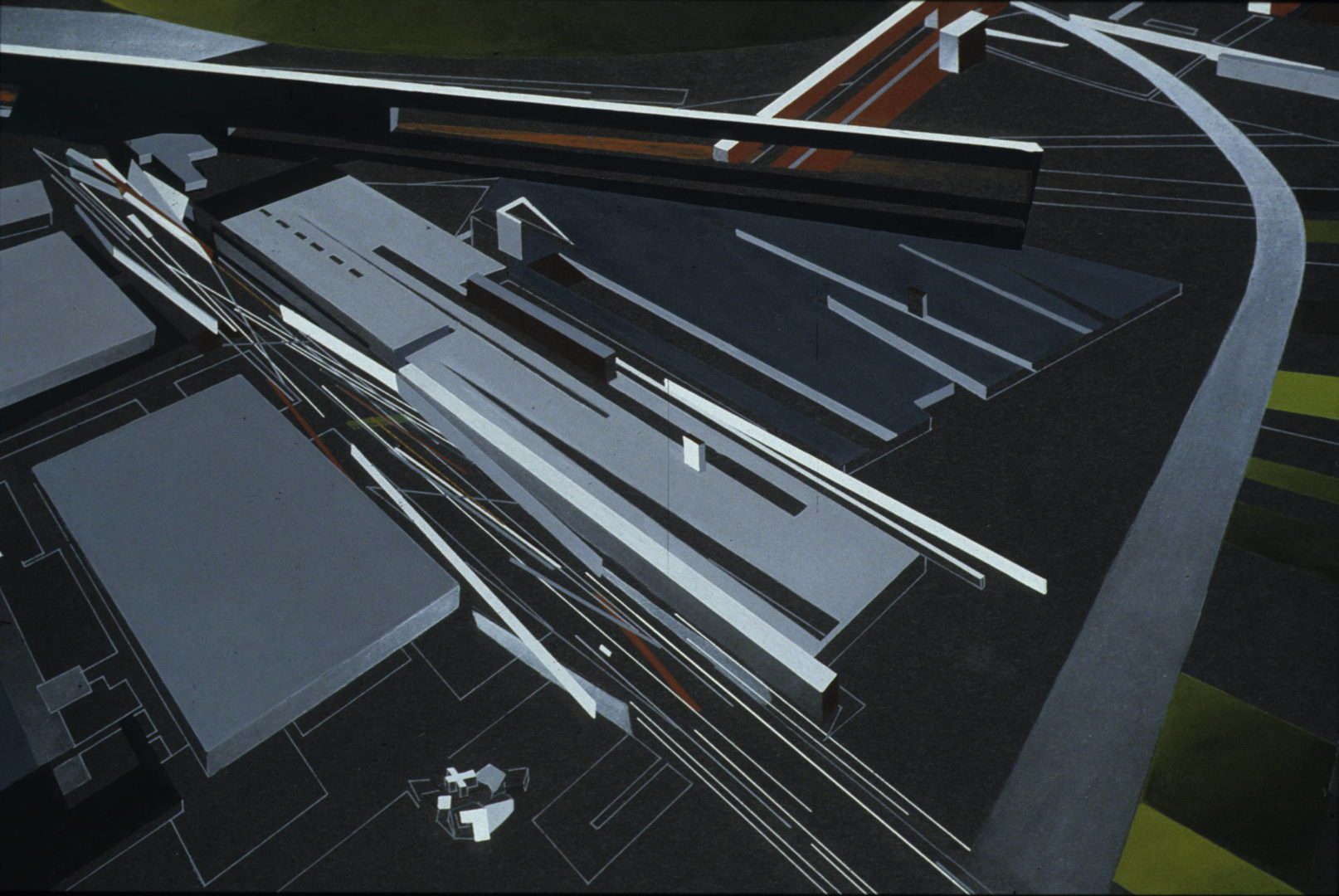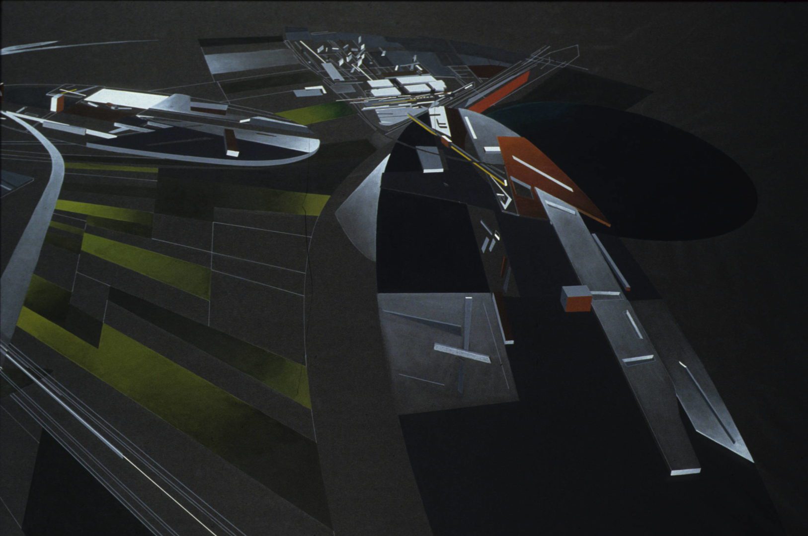 Painting formed a critical part of Hadid’s early career as the design tool that allowed powerful experimentation in both form and movement – leading to the development of a new language for architecture. Hadid’s interest in the concepts of fragmentation and abstraction is evident throughout her repertoire and continues to this day. Originally engaging with the work of Kazimir Malevich, Hadid translated the warped and anti-gravitational space of Russian avant-garde painting and sculpture into her own unique architectural practice.