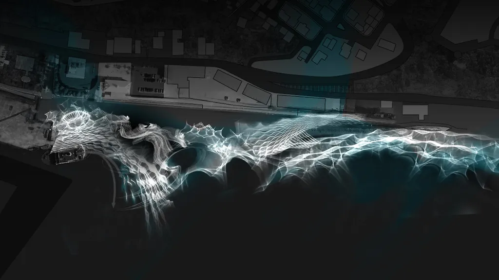 Testing the sounds through movement, a layering of strings created a harmonic display of sounds, as it vibrates by the local costal winds of Quebec Canada. Taking the approach of light, its rays where carefully mapped to precisely see its behavior, when it moves from its source and projected on to various surfaces. This allows the rays to be refined and optimize to there liking. Users of the museum will see an array of light displays invoking an emotion, with a harmonic sound produced from the surrounding winds making the Museum like an Aeolian Pavilion