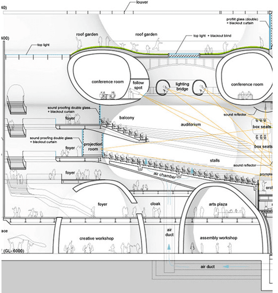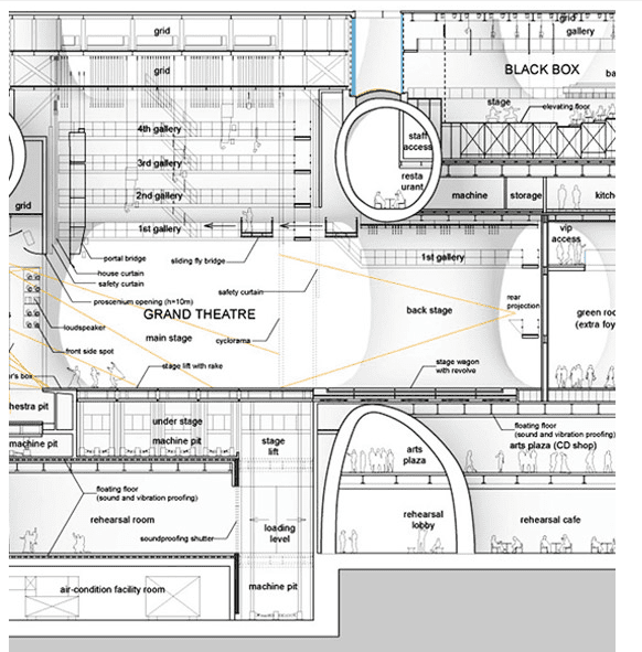 The Taichung Metropolitan Opera by Toyo Ito is an architecture that is architecture that strives to be many things- architecture being only one of these things. One surface is simultaneously floor, wall, ceiling, roof, structure…