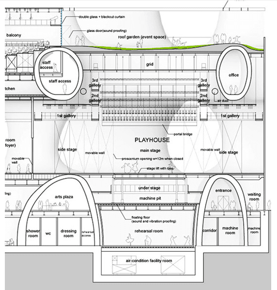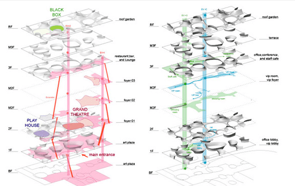 Taichung Metropolitan Opera, You might have an aneurysm trying to determine its topological value, but it’s all one surface. One surface creates the whole shabang. And this shabang has much more value to it than mere looks. The intellectual value alone is worth the article. Architecture, just like the rest of society and culture is moving in the direction of multitasking. We no longer ask only for architecture from our architects and architecture. Now a building must be architecture + ___________. Perhaps the blank is ‘friend’ or ‘art’ or… you name it. The point is that even if it is just architecture, we as humans move to ascribe another meaning, even if we’re the first to think of it.
