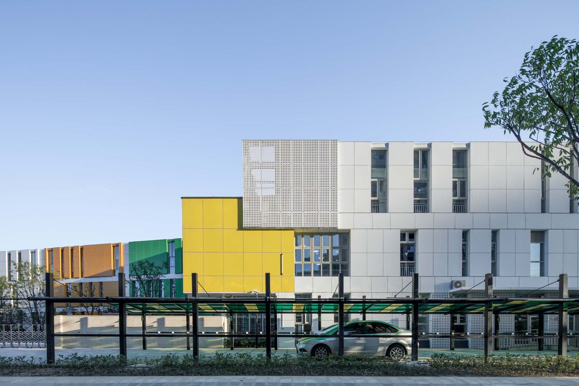 All residential buildings in the area mainly reflect two tones: grey and loess. The architect thought that this should not be a beautiful lakeside color, so we hoped to bring a bright color to the lakeside environment, add more vitality to the community, let the residents see from the surrounding high-rise buildings, can immediately find this lakeside space with kindergarten as the ” note point ” without losing in the “forest” of grey and yellowish steel and cement.