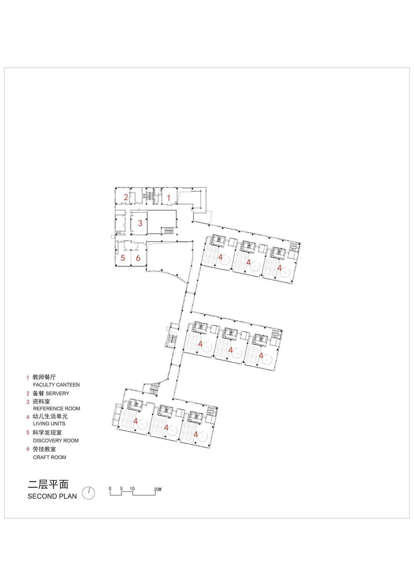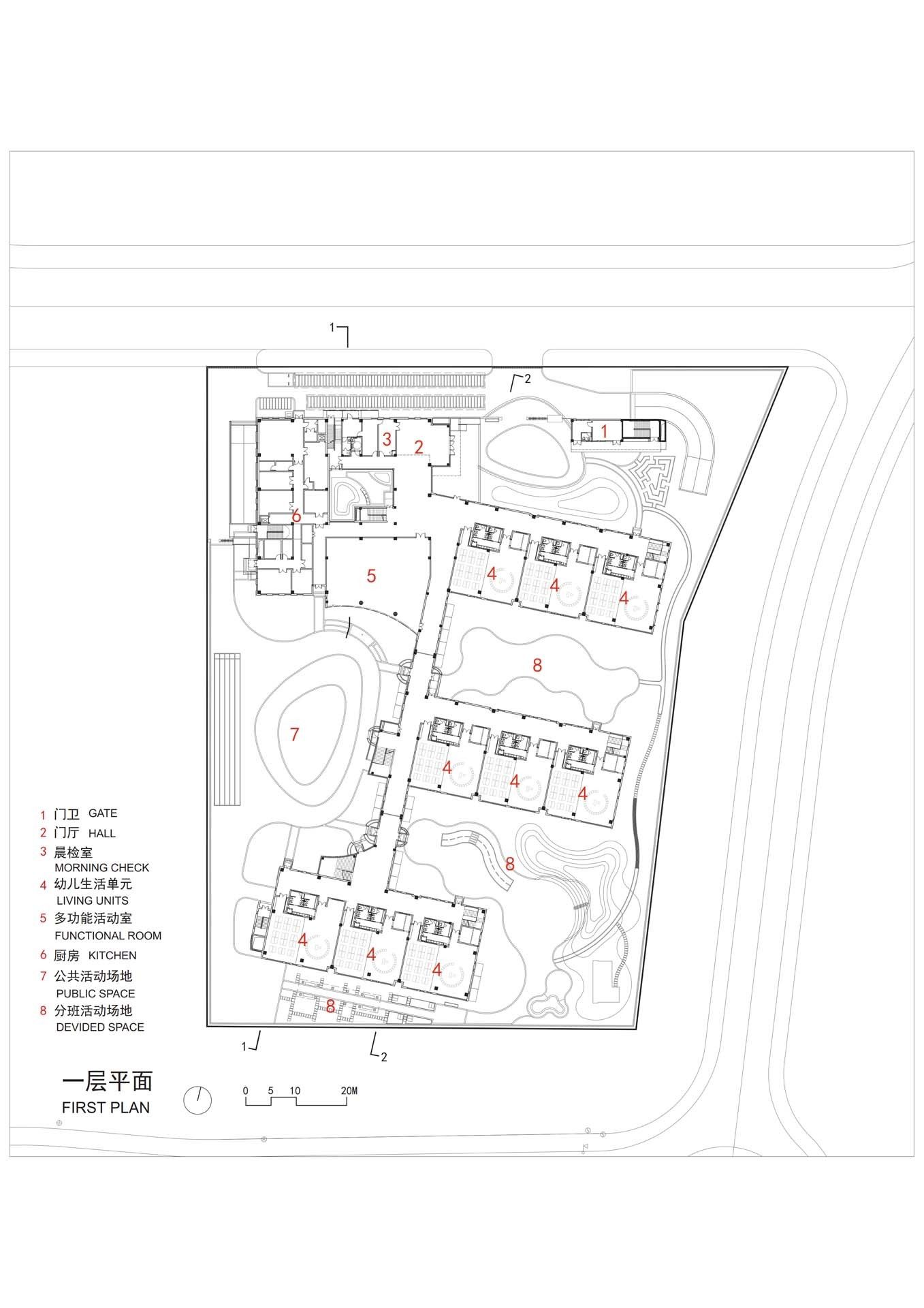 Three rows of classrooms were arranged parallel from north to south. This pattern was very in line with the way of class integration in kindergartens. It allowed the kindergarten to have a flexible choice of grade groups. For example, junior, secondary and senior classes could be integrated into three different floors, or three grades can be integrated into three different buildings. The architect has given the gardener sufficient flexibility to cope with the ever-changing requirements in use.
