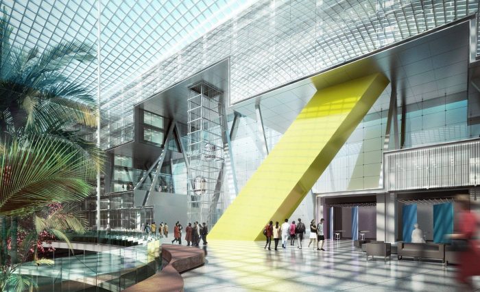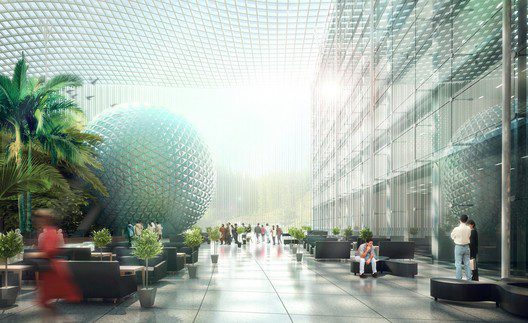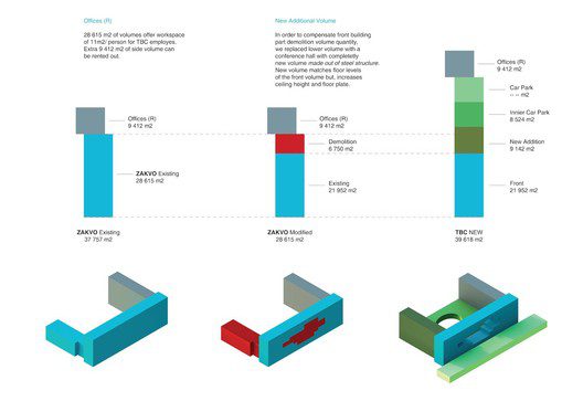 A focus has been given to introducing a void-lobby, which acts as a connection hub for the building complex and an orangery Introducing the covered courtyard as the main interaction-point of the program was derived from the idea of bringing people to place with an optimal development focus to meet all possible business needs. All functions of the building have separate access points to the courtyard making the platform a secure and ultimately flexible connection zone.