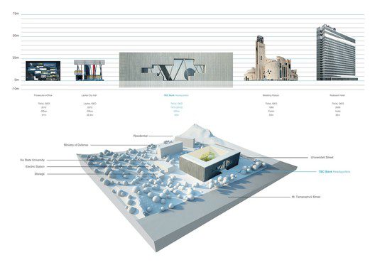 TBC Bank Headquarters, In June of this year, international competition has been announced regarding a large-scale project by TBC Bank that will see the construction and design of the bank’s new corporate head office. TBC Bank’s new building will become the largest business-center in Georgia. Here we present the entry of Architects of Invention were the second place winners, their proposal is a discovery of boundless resource within secure parameters. Visitors enter through the building’s opening, like a key entering a lock, and a lush and fertile oasis appears before them. More images and architects’ description after the break. More details about the project from architects below.
