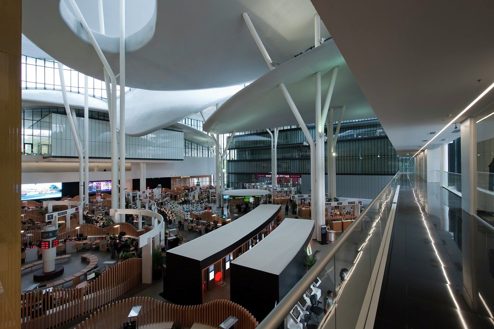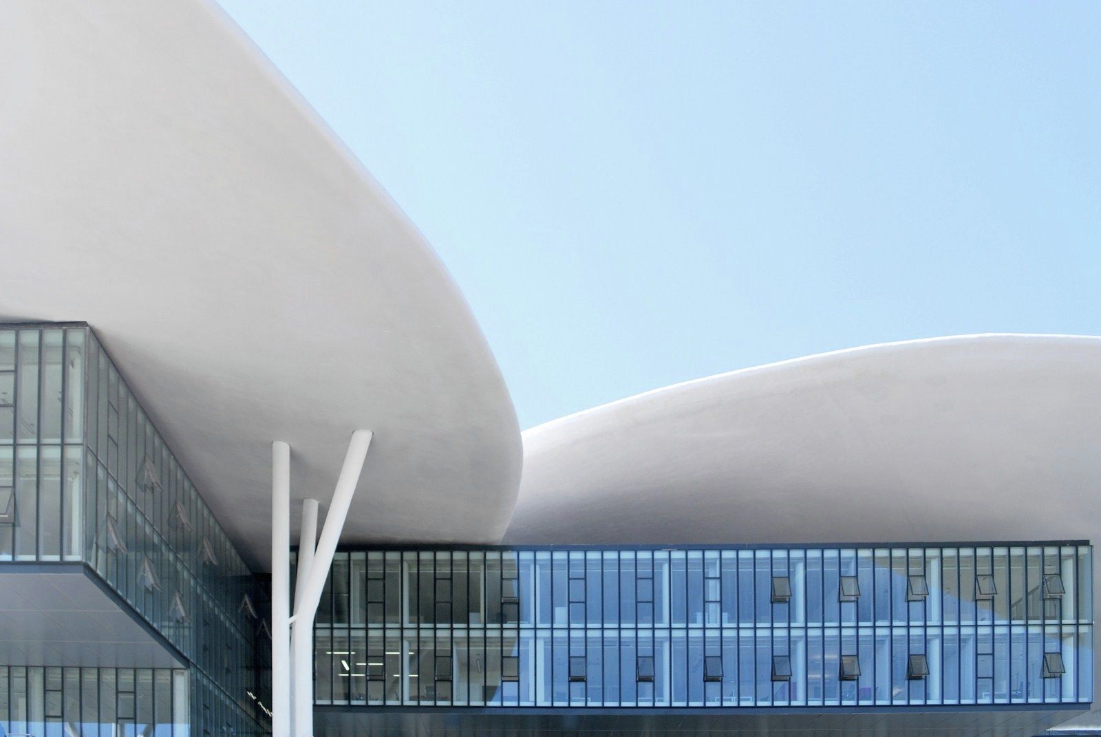 Among the petals, that are at different levels, are the glass facades. The main characteristic of these facades is that these have been released completely from the structure of the petals, allowing relative movements between the facade and the spatial network structure of coverage. This decision was taken to prevent that any movement of the cover, mainly due to oscillations for snow loads, wind or thermal expansion, can lead to the crisis of the glass.