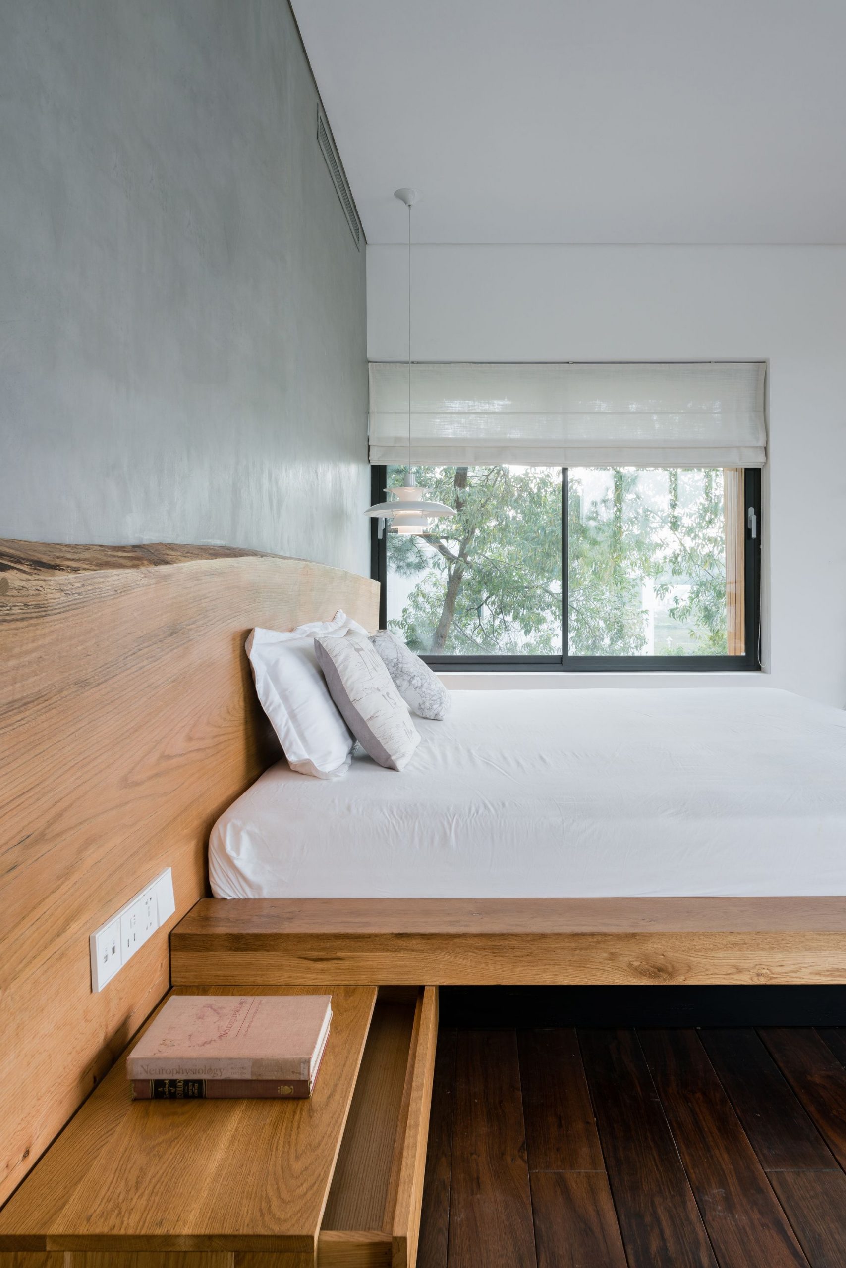 Designed by Pham Thanh Huy, Teak House is the result of a journey seeking for the beauty of architecture in the interplay between culture and environment. In this interesting and arduous journey, we have been looking for the harmony of architecture, interiors, materials and natural wood techniques to create a delicate and sustainable house.The villa located on a pine hill in Flamingo Dai Lai Resort was renovated to become the escape place from the busy of the city. The wood walls along with light color and rough stone bring a friendly, cozy and close to the natural atmosphere to the users.